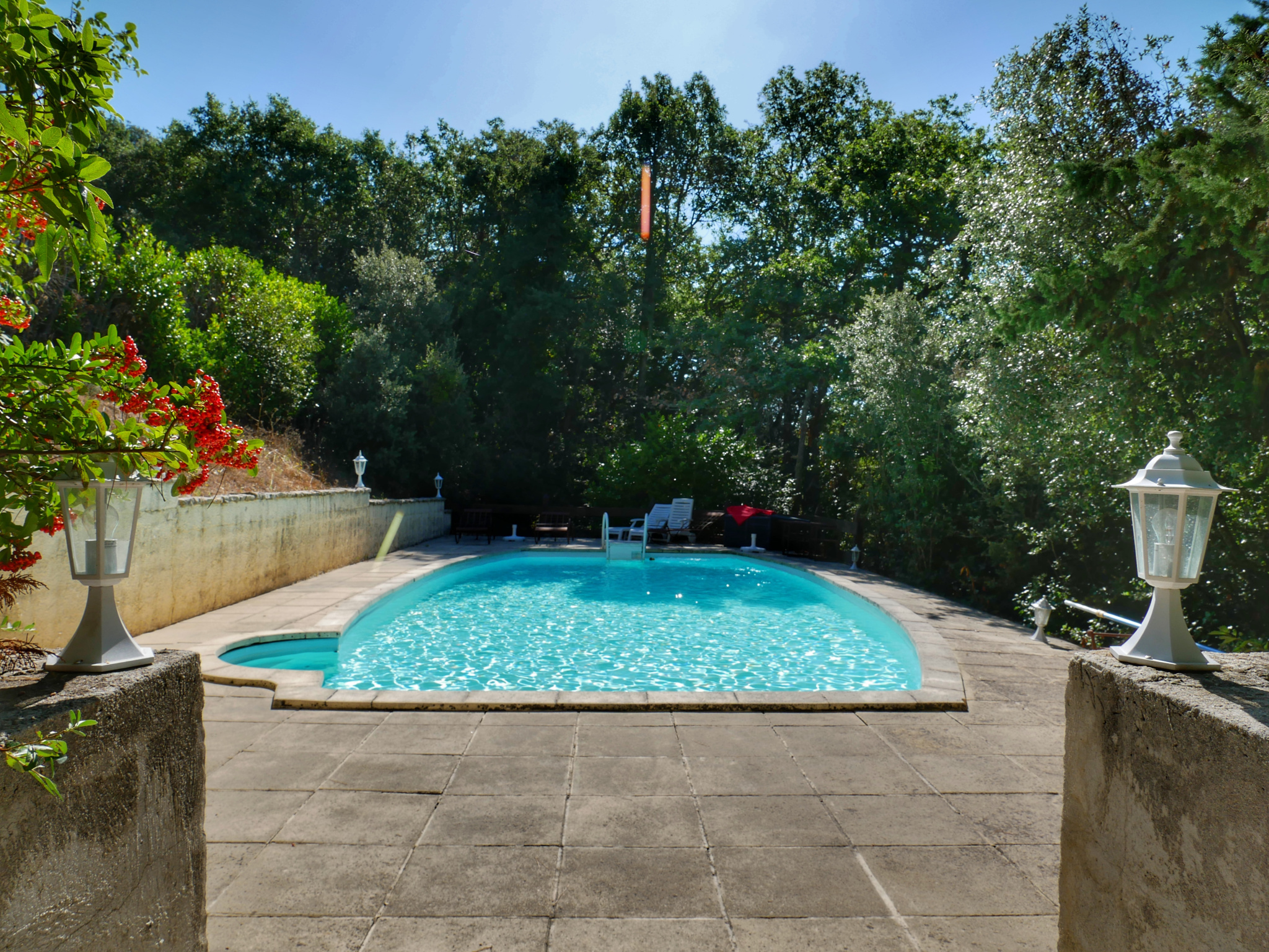 ...Elle est implantée sur un terrain arboré de 735 m2 exposé plein sud...