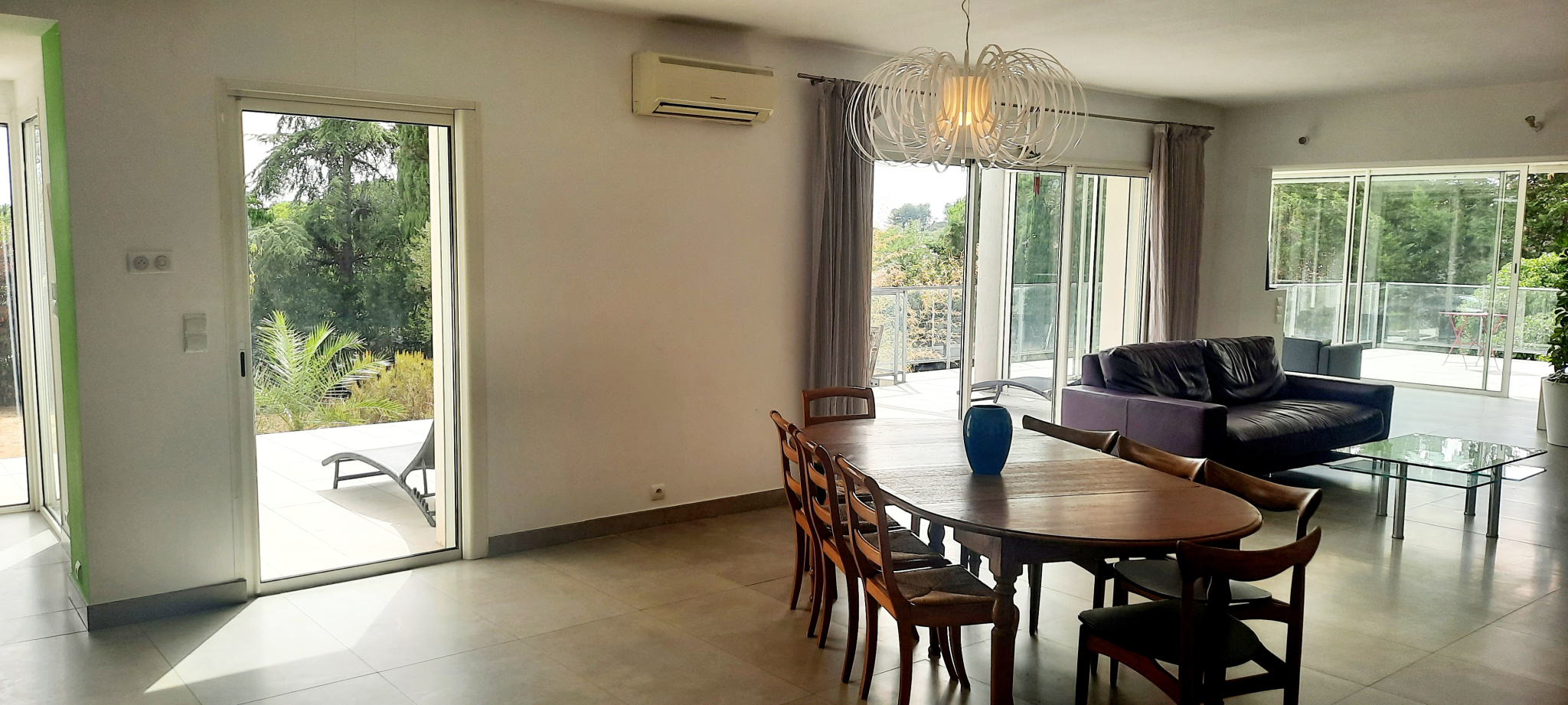 ...La Maison est entièrement ouverte sur l'extérieur par de grandes baies vitrées qui lui confèrent...