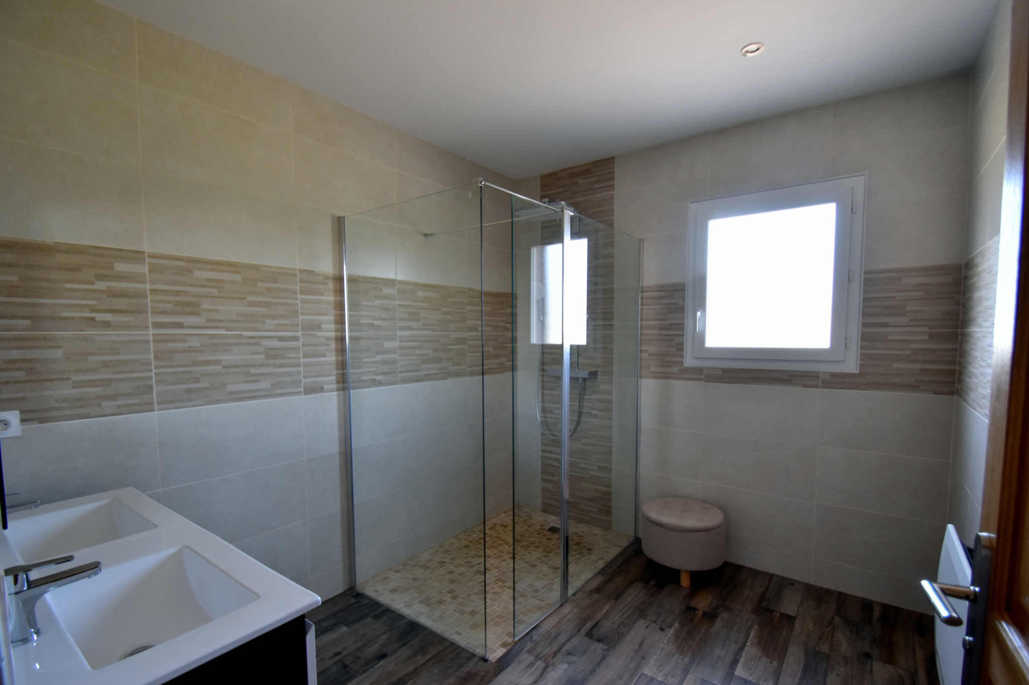 ... une luminosité naturelle remarquable. Elle est équipée de stores électriques et d'une pompe à chale...