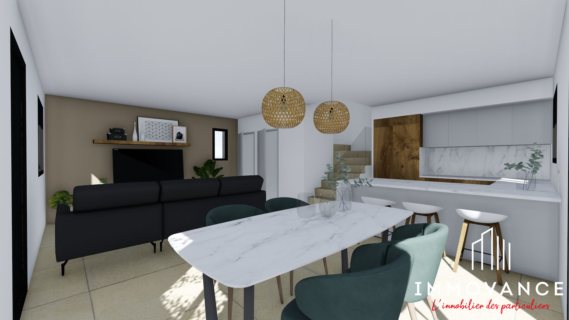 ...Séjour cuisine américaine de 65m2, une chambre de 19m2, une douche italienne au rez de chaussé...