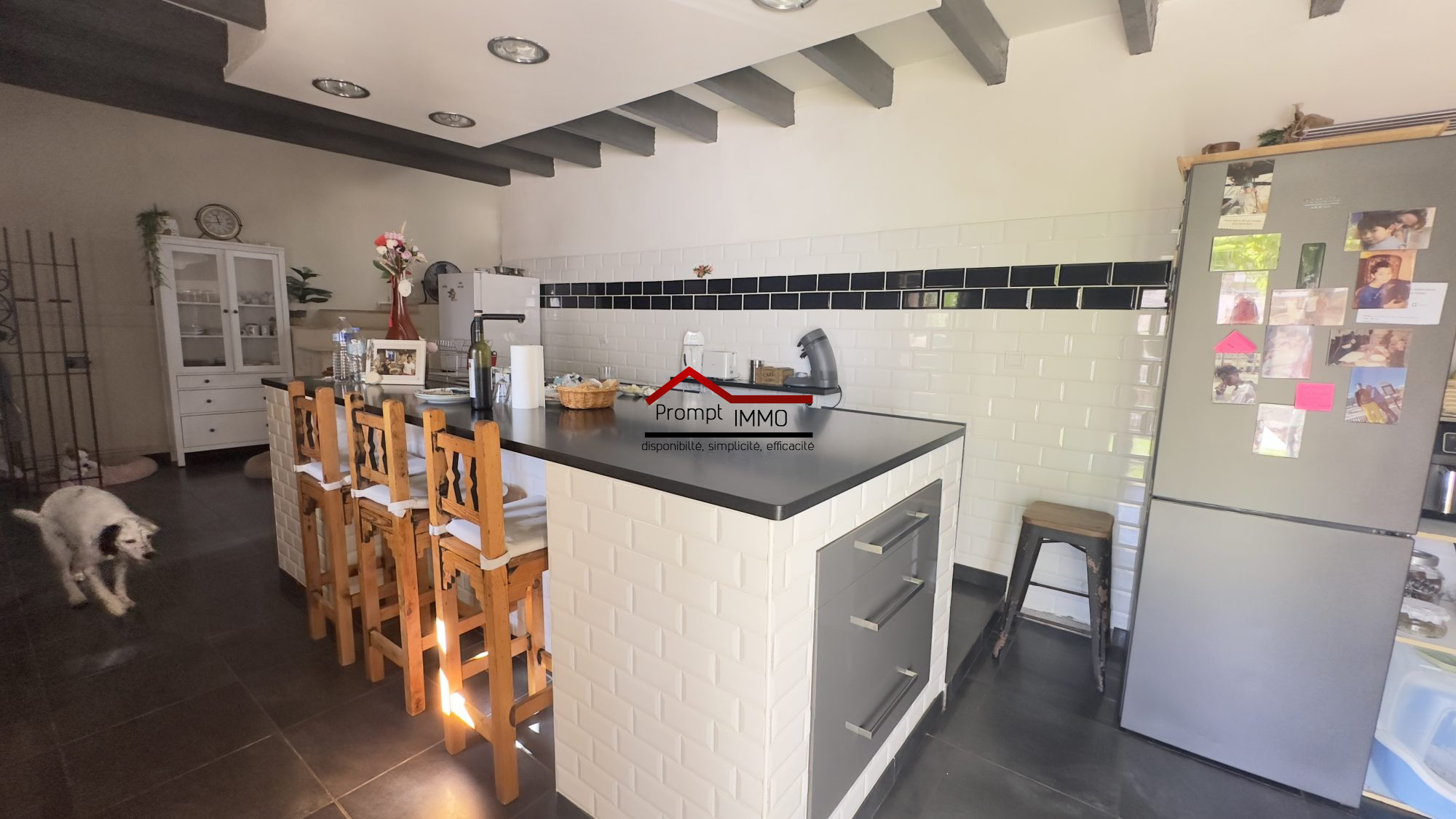 ...Au rdc vous trouverez la pièce de vie avec le coin cuisine aménagé et équipé avec la vaisselle,...