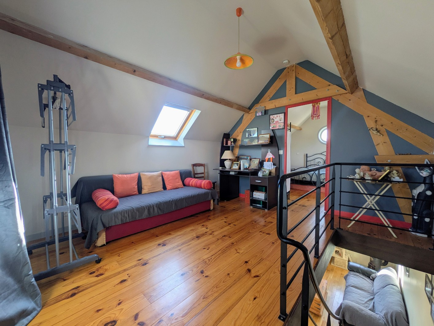...A l'étage: un palier et une chambre...