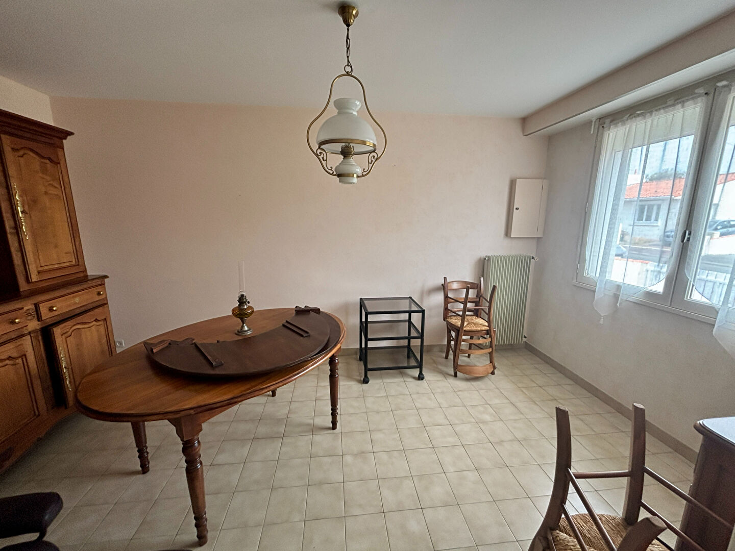 ... et poêle à bois récent + accès vers terrasse et jardin ; Salle à manger avec accès terrasse et jard...