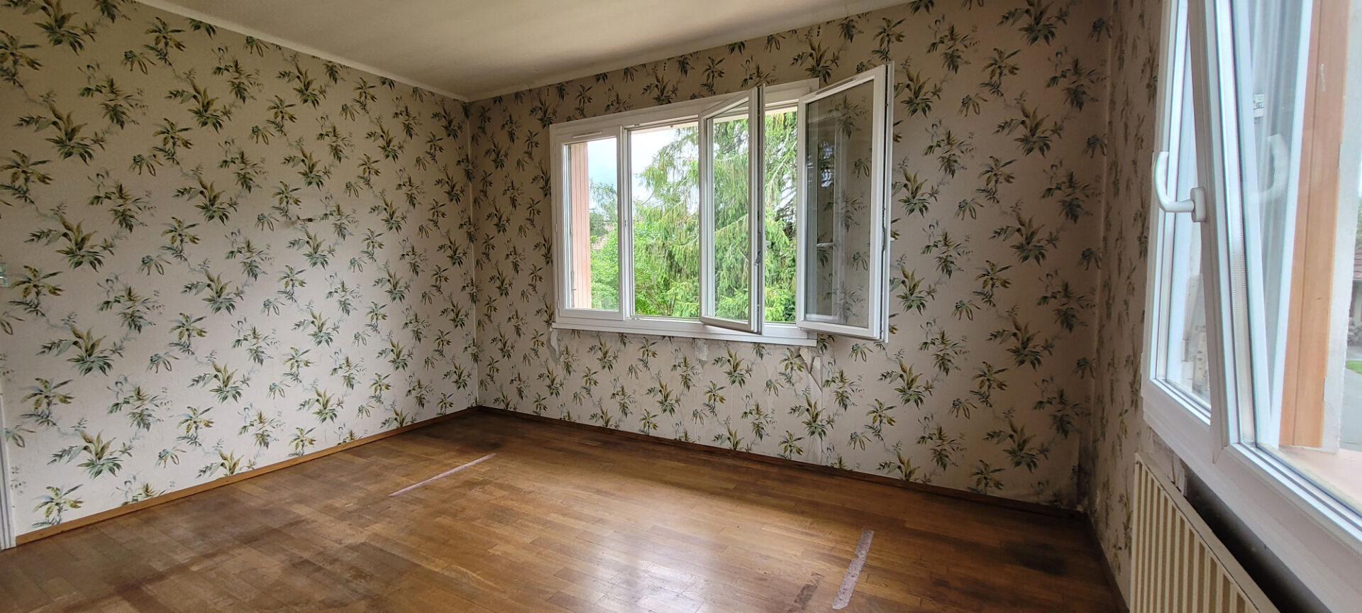 ...Premier appartement (à rafraîchir) : hall d'entrée, cuisine, salon/séjour avec insert bois, trois...
