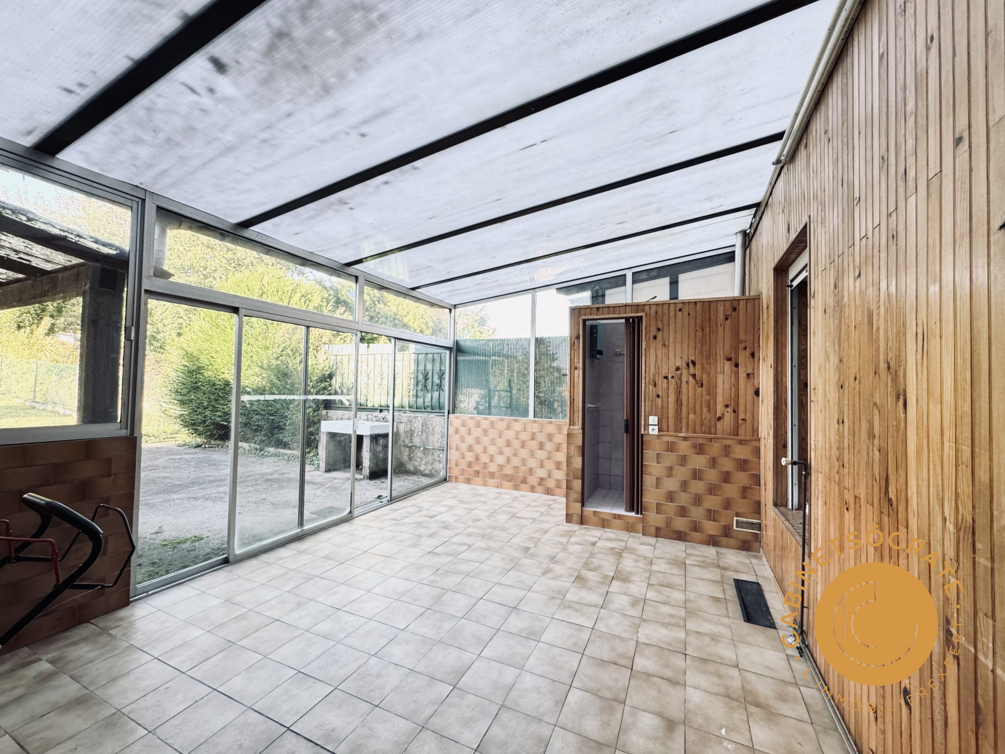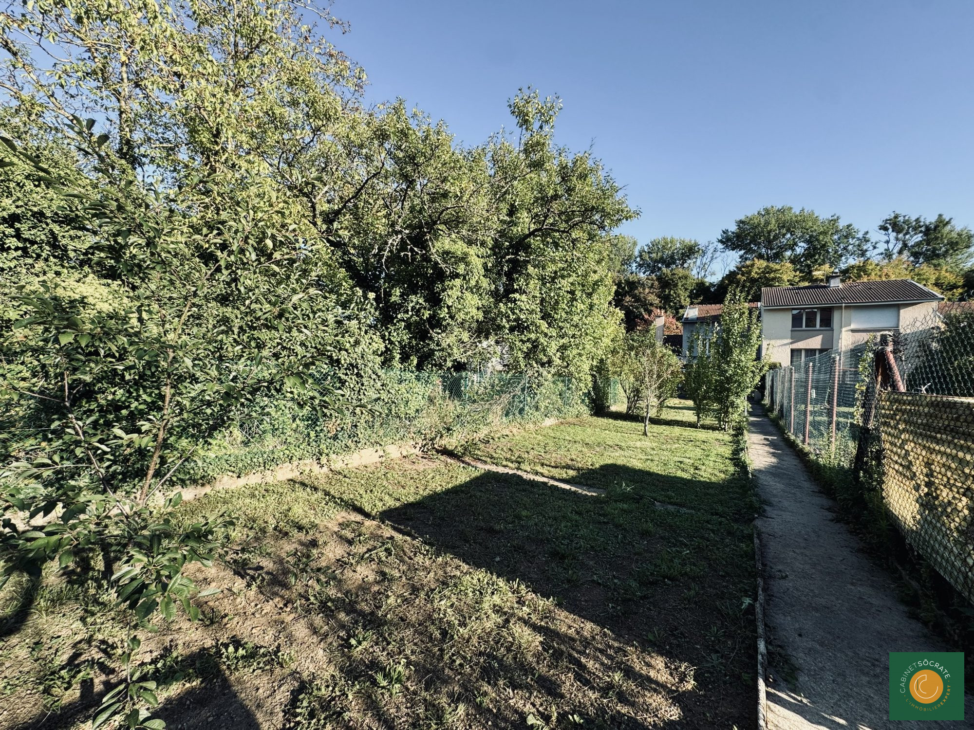 ...A l'avant de la maison un jardinet et une cour permettent de stationner un véhicule; à l'arrière...