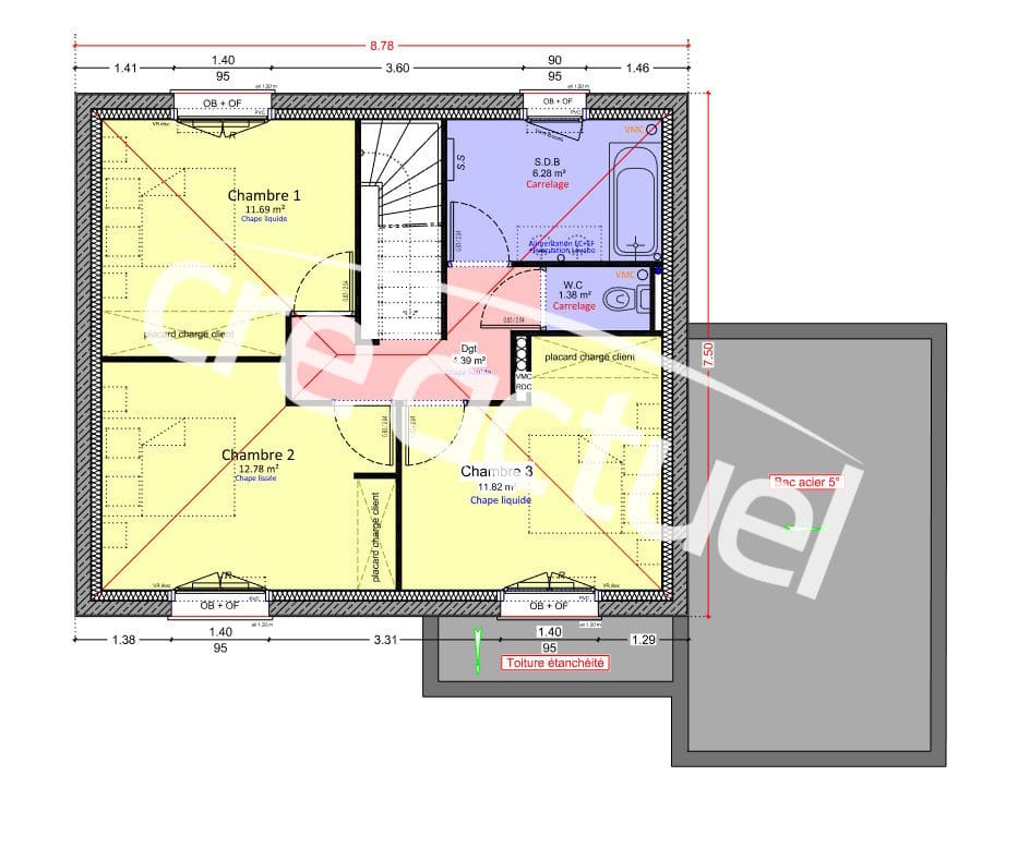 ...Sur un terrain de 296 m2 situé sur la Commune de CHANTELOUP, proche du centre et des commerces,...