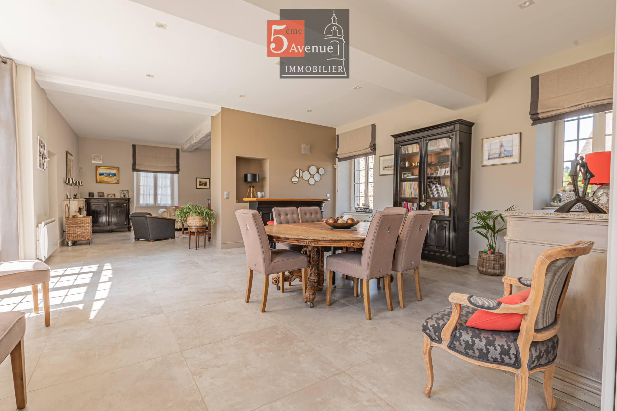 ...Le rez-de-chaussée se compose d'un double séjour avec cheminée centrale, offrant un espace de vie...