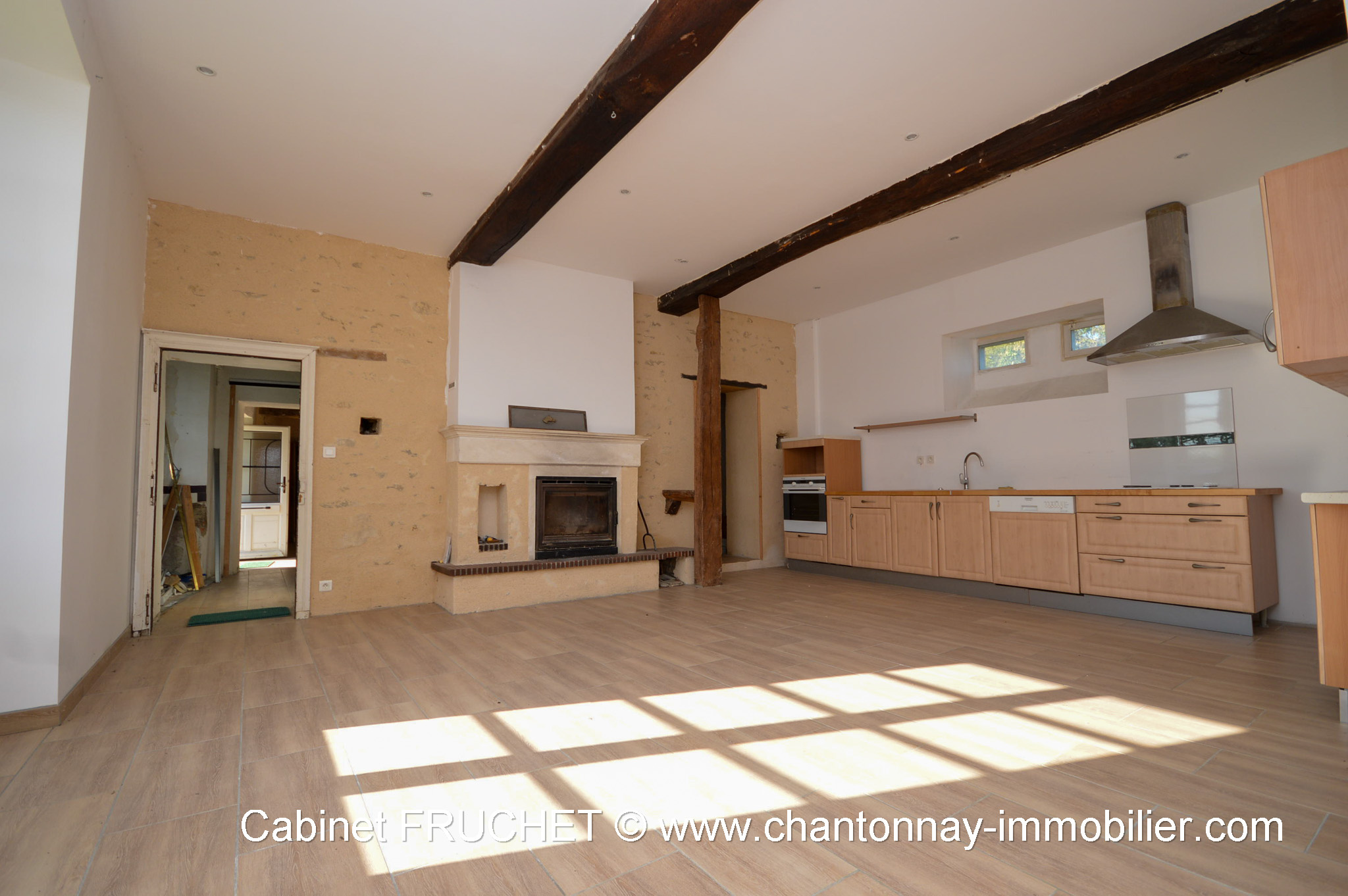 ...Maison en bon état, de 80 m2 comprenant :- Au RDC surélevé : Entrée, salon avec cheminée...
