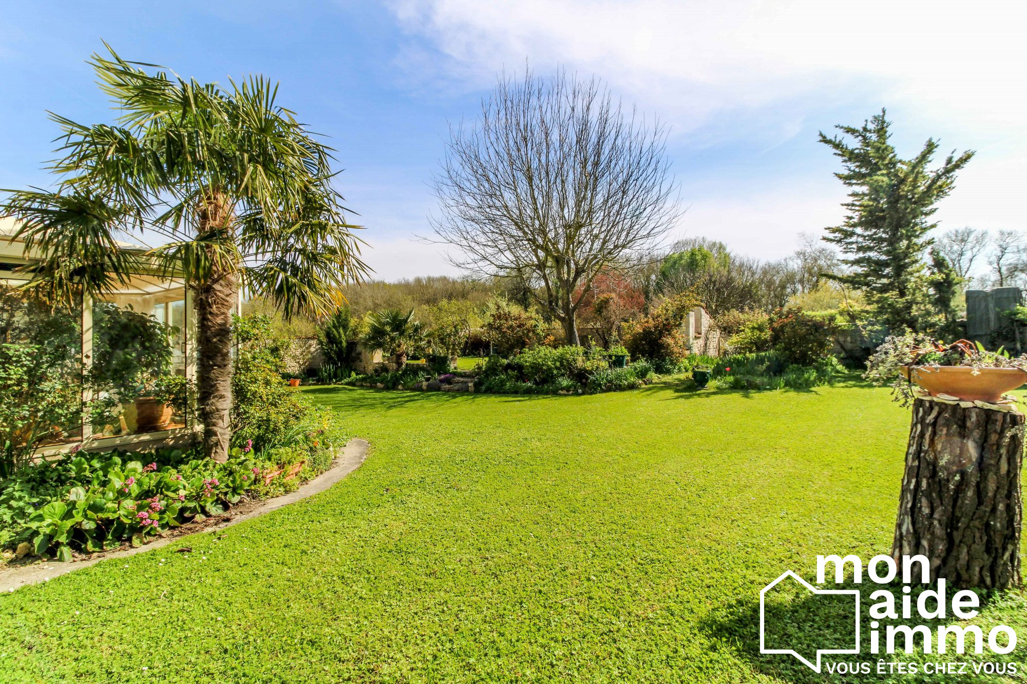 ...Dans le prolongement de la pièce de vie, une terrasse couverte de 46 m² dominant le jardin,...