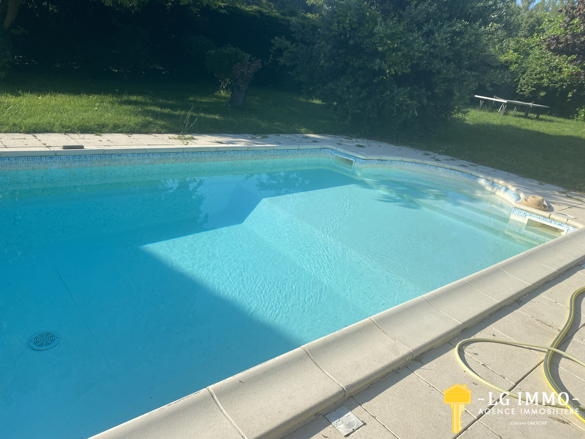 ... LG IMMO vous propose cette maison en pierres de 125 m2 avec piscine, située dans un village calme à...