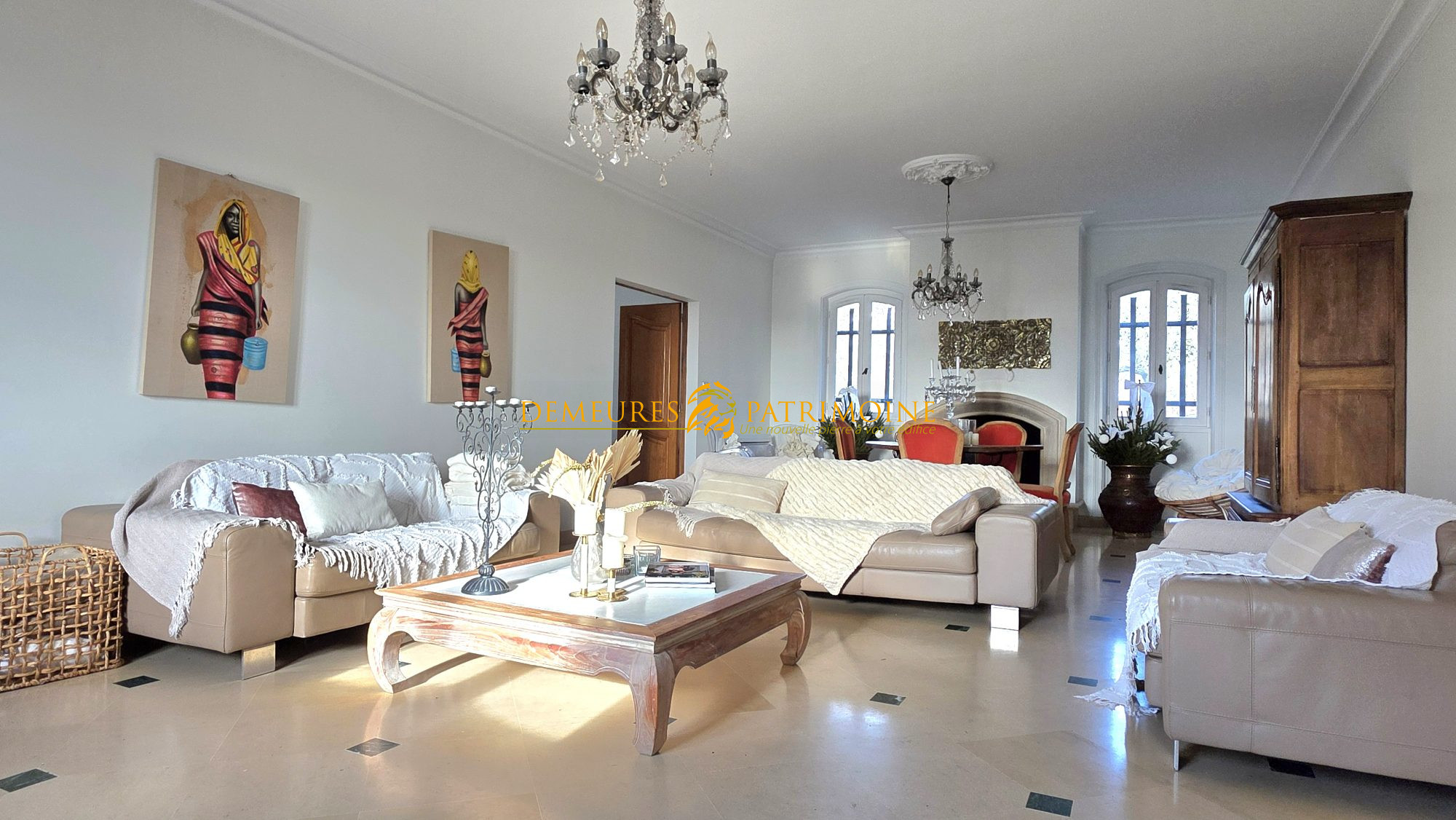 ...Elle s'étend sur dix pièces généreuses, dont un salon magnifiquement habillé de boiseries qui...
