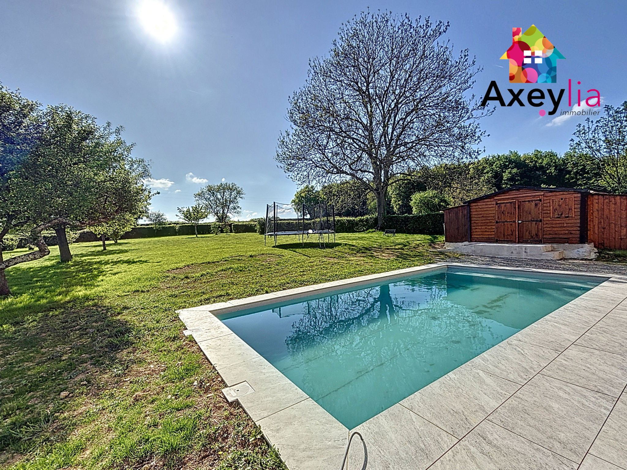 ...Le tout sur terrain clos et arboré avec carport pour 2 voitures, terrasse, piscine creusée...