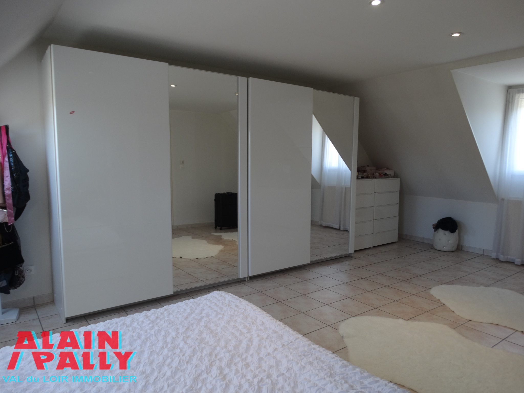 ...A L'étage 4 chambres lumineuses dont une de 30m2 environ, salle de bain, wc, dressing, bureau...