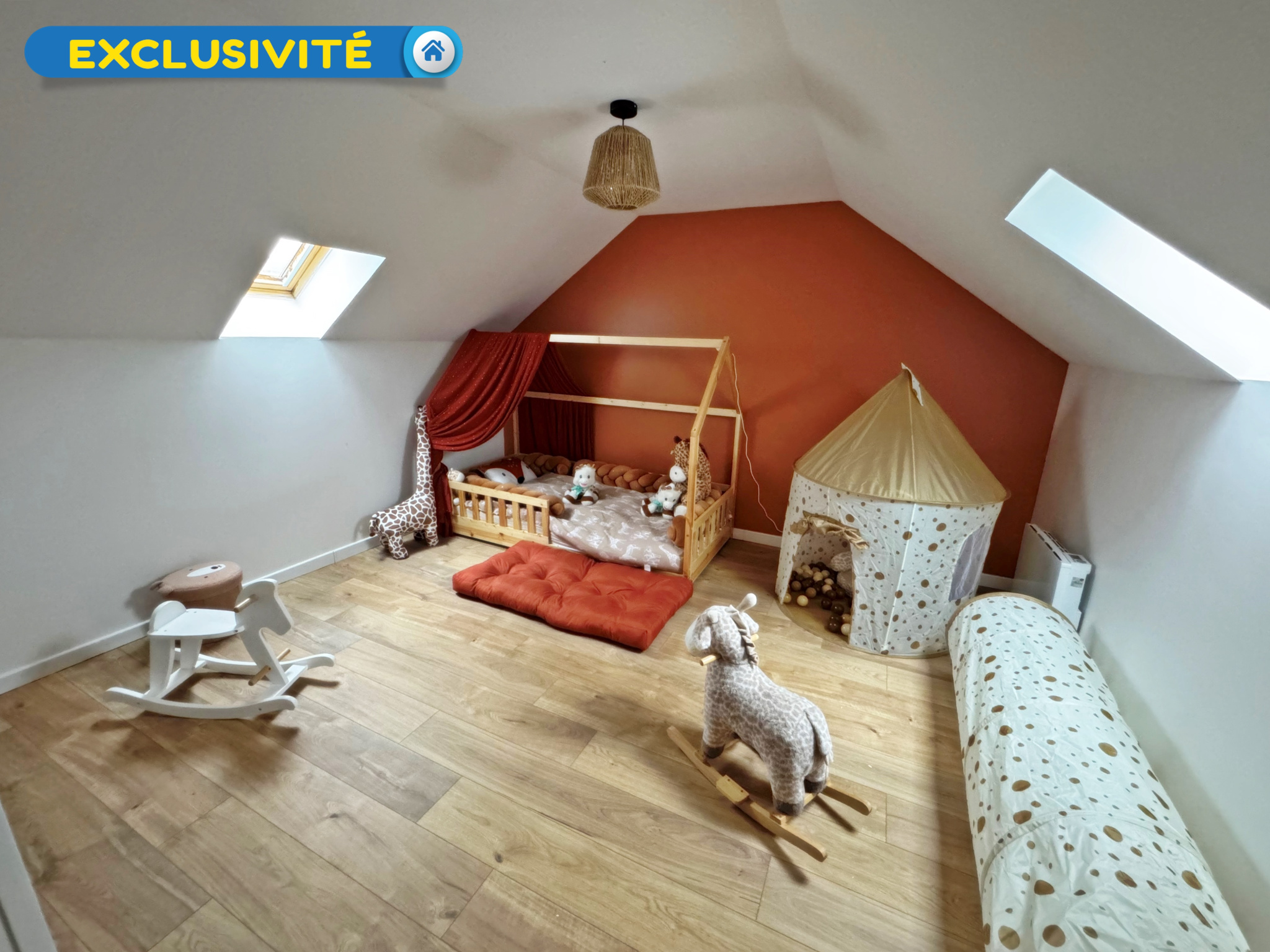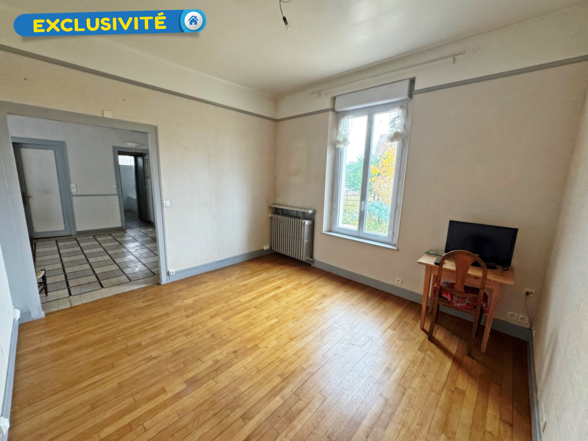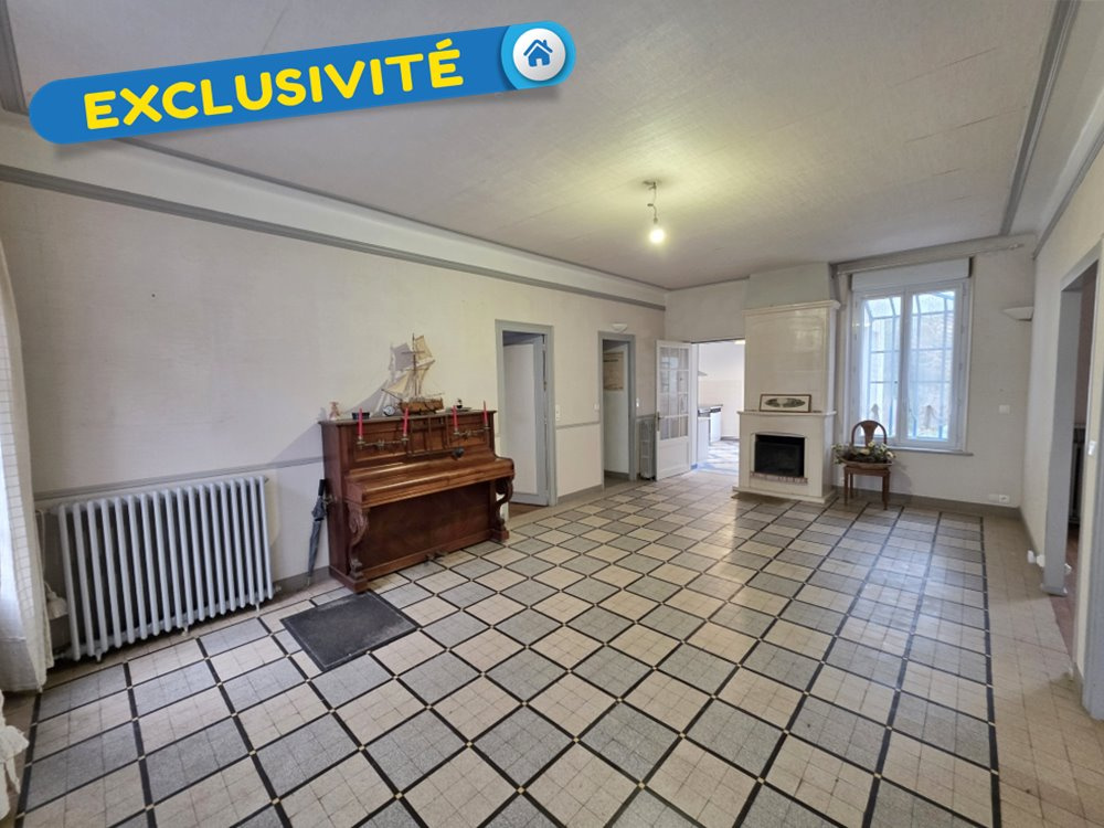 ...Au rez-de-chaussée, vous trouverez un espace cuisine à aménager, un vaste salon avec cheminée à...