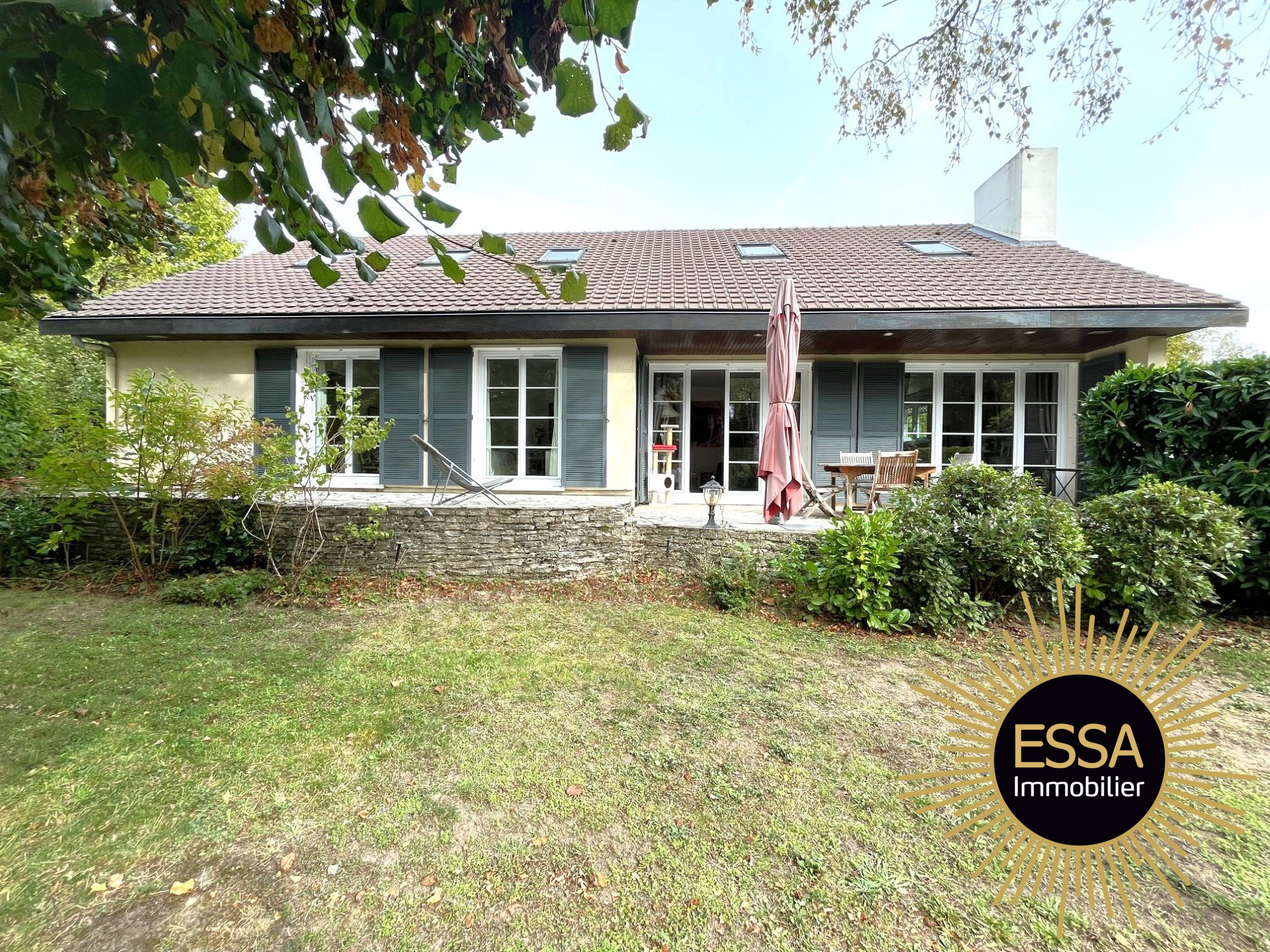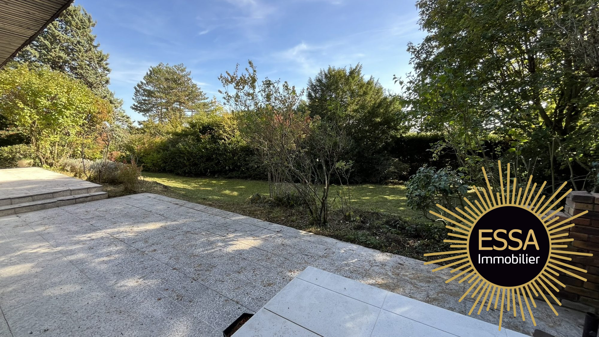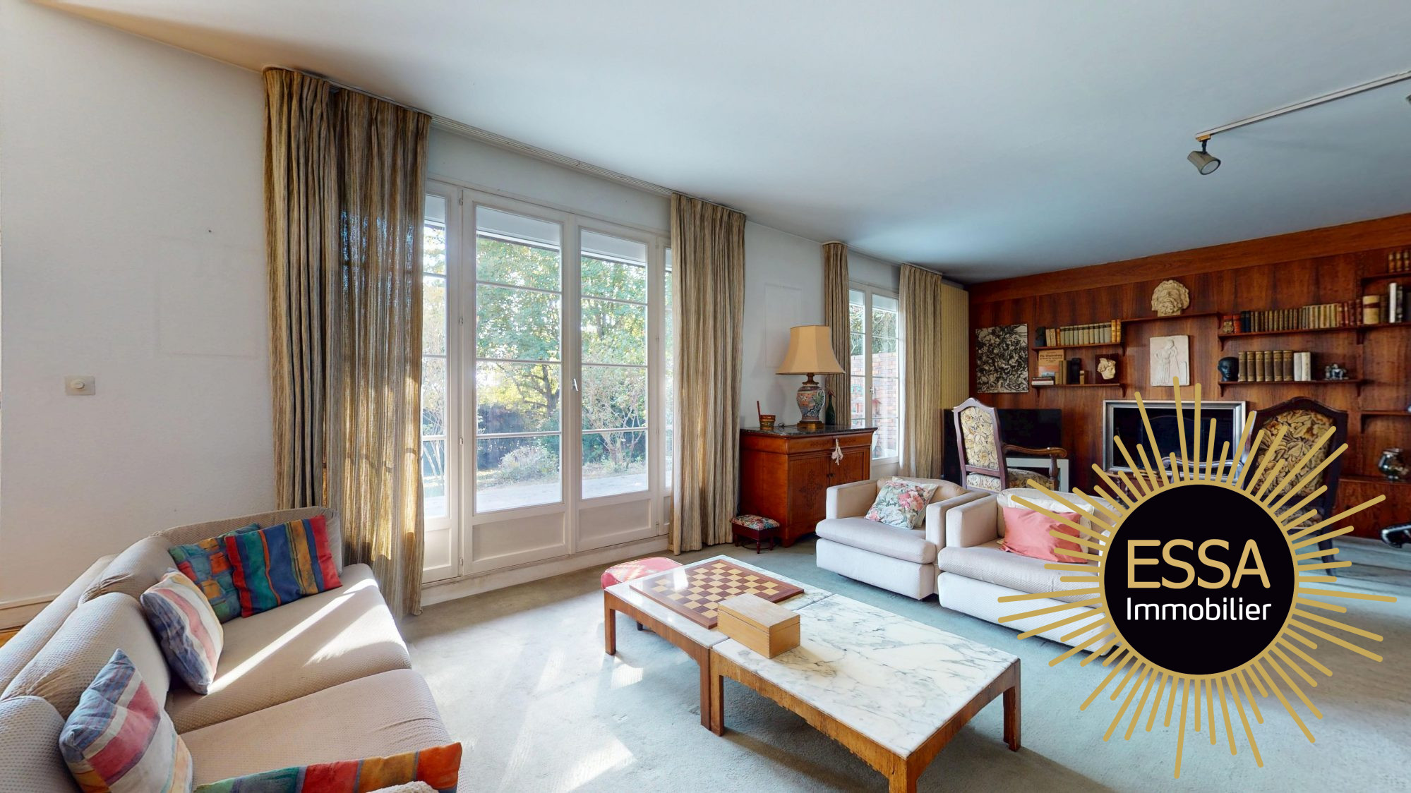 ...Entrée cathédrale, double réception de 45 m², cheminée, baies vitrées sur terrasse et jardin...