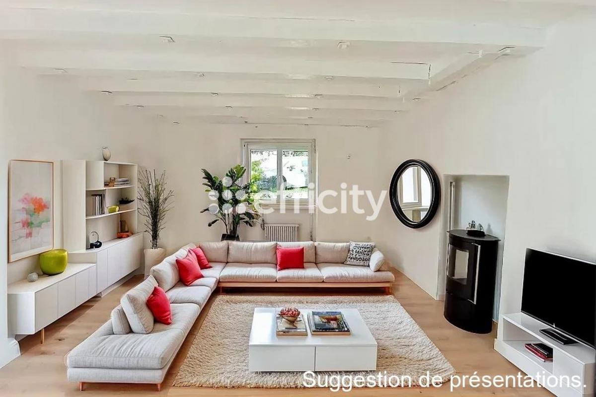 ...Au rez de chaussée un bel espace salon-séjour avec emplacement pour un poêle et ouvert sur une...