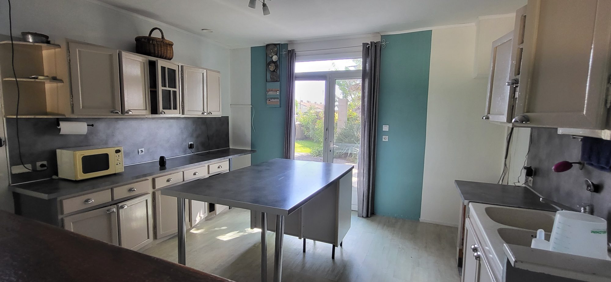 ...Elle se compose d'un vaste salon lumineux aménagé d'un poêle à bois, d'une cuisine, d'un bar...