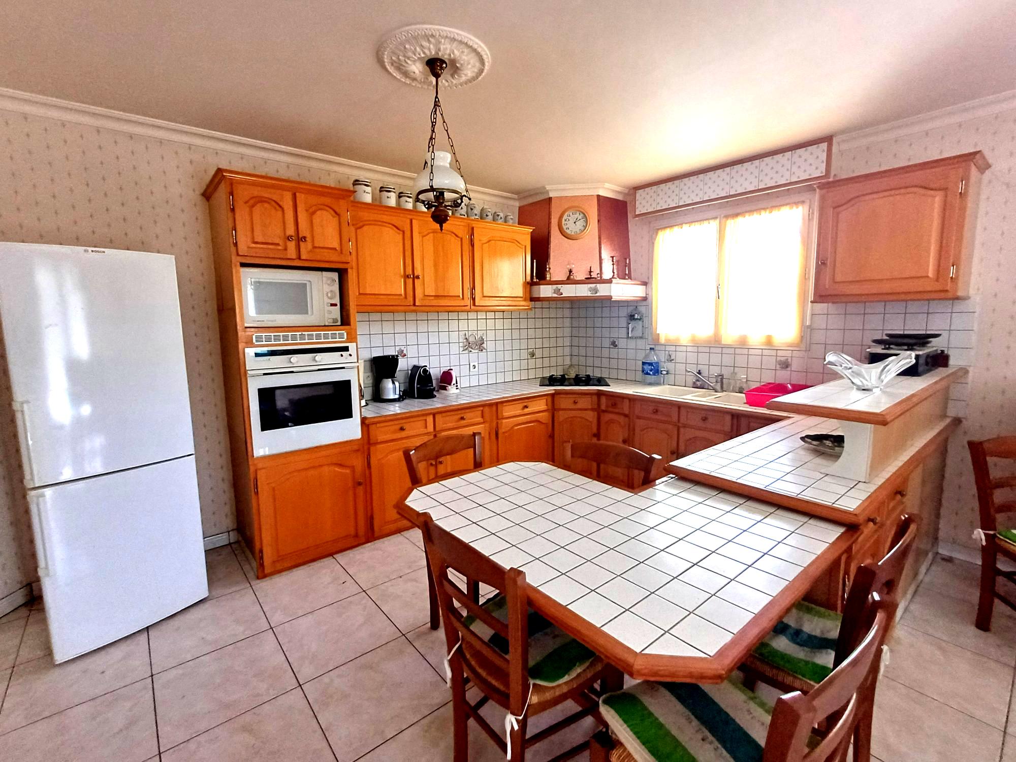 ...Au rdc, cette maison se compose d'une cuisine toute équipée ouverte sur le séjour salon, 2 belles...