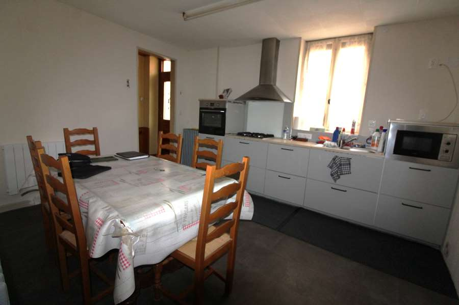 ...RDC : entrée sur Cuisine/Salle à manger (env 35m2) - escalier accès étage - conduit de cheminée...