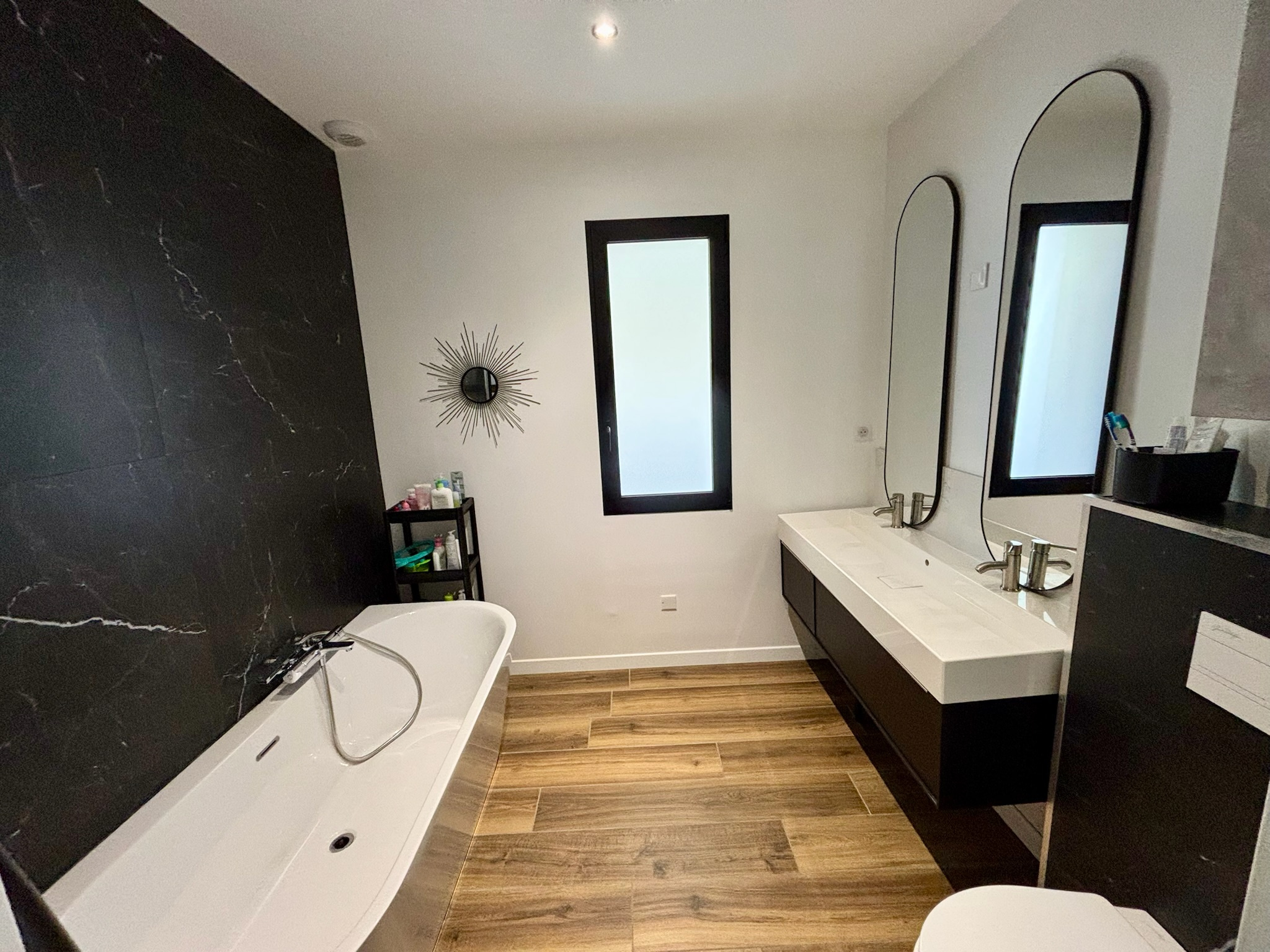...Le coin nuit offre quatre chambres, une salle de bains avec bain et douche italienne, un WC, un...