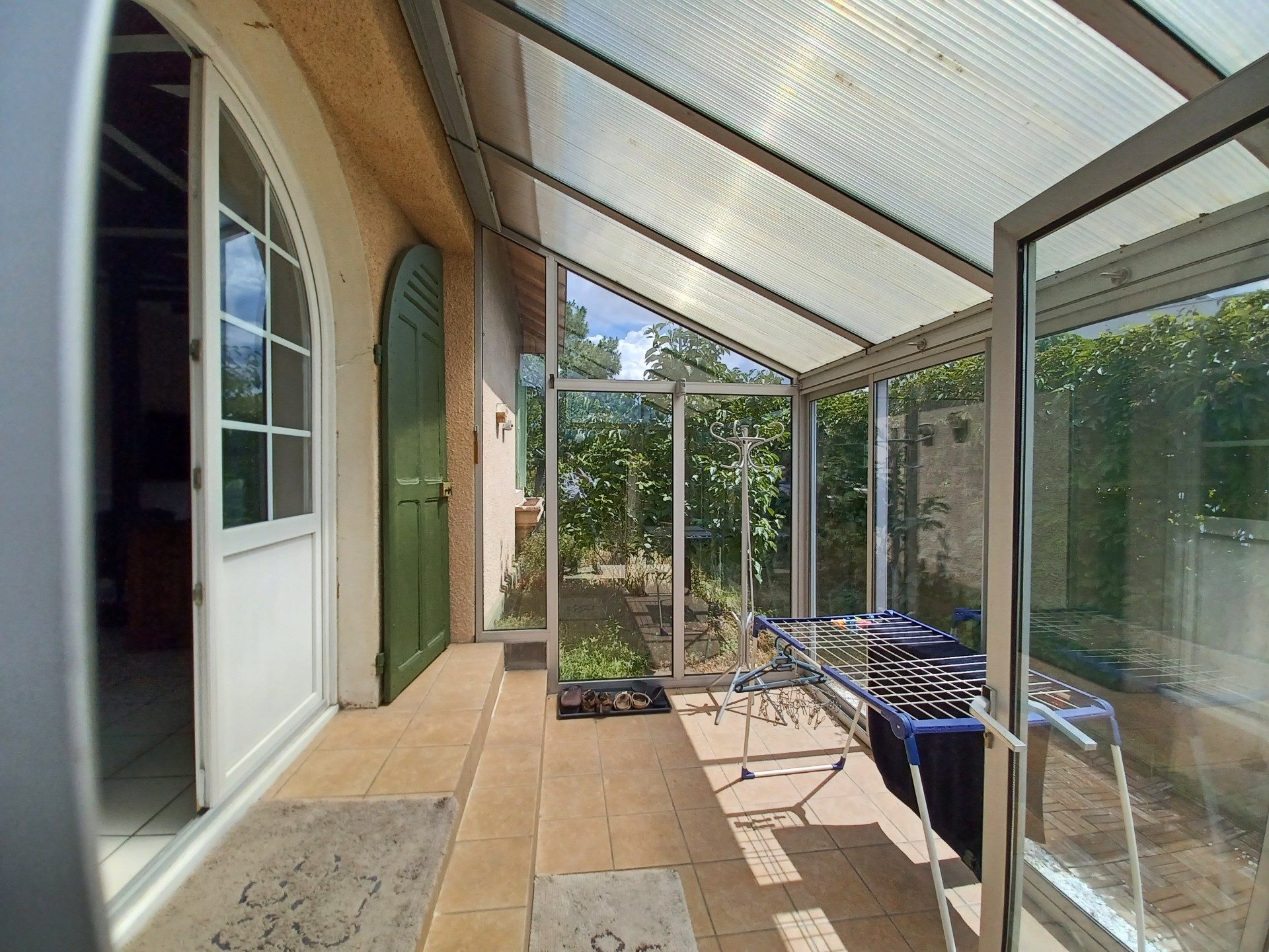 ...En rez de chaussée : entrée, chambre, buanderie avec douche et WC, véranda et garage avec porte...