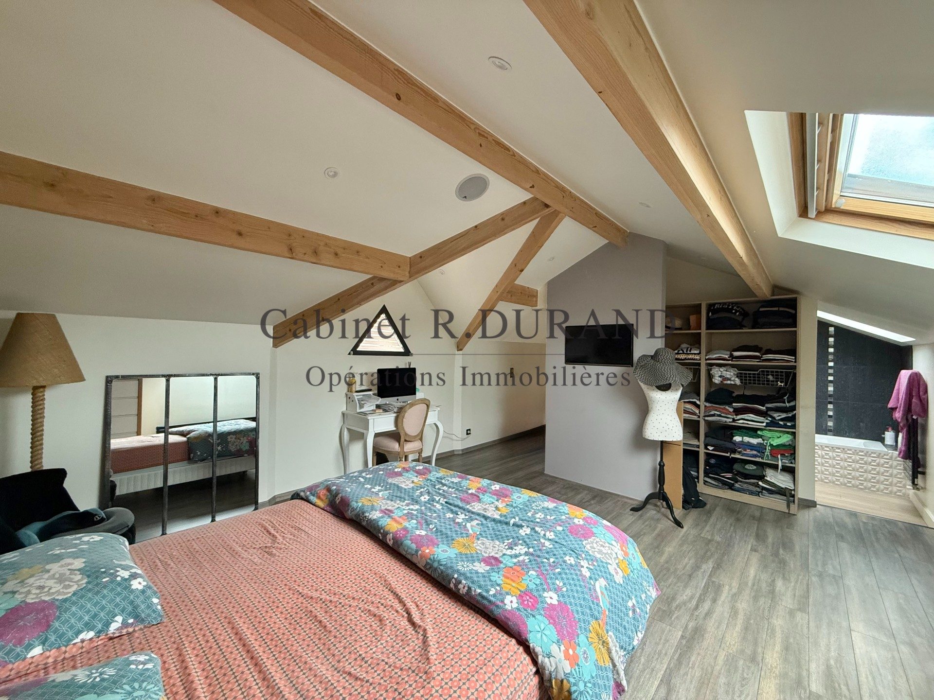 ...A l'étage, palier, 3 chambres, salle d'eau, salle de bains avec WC, accès à un balcon et au roof...