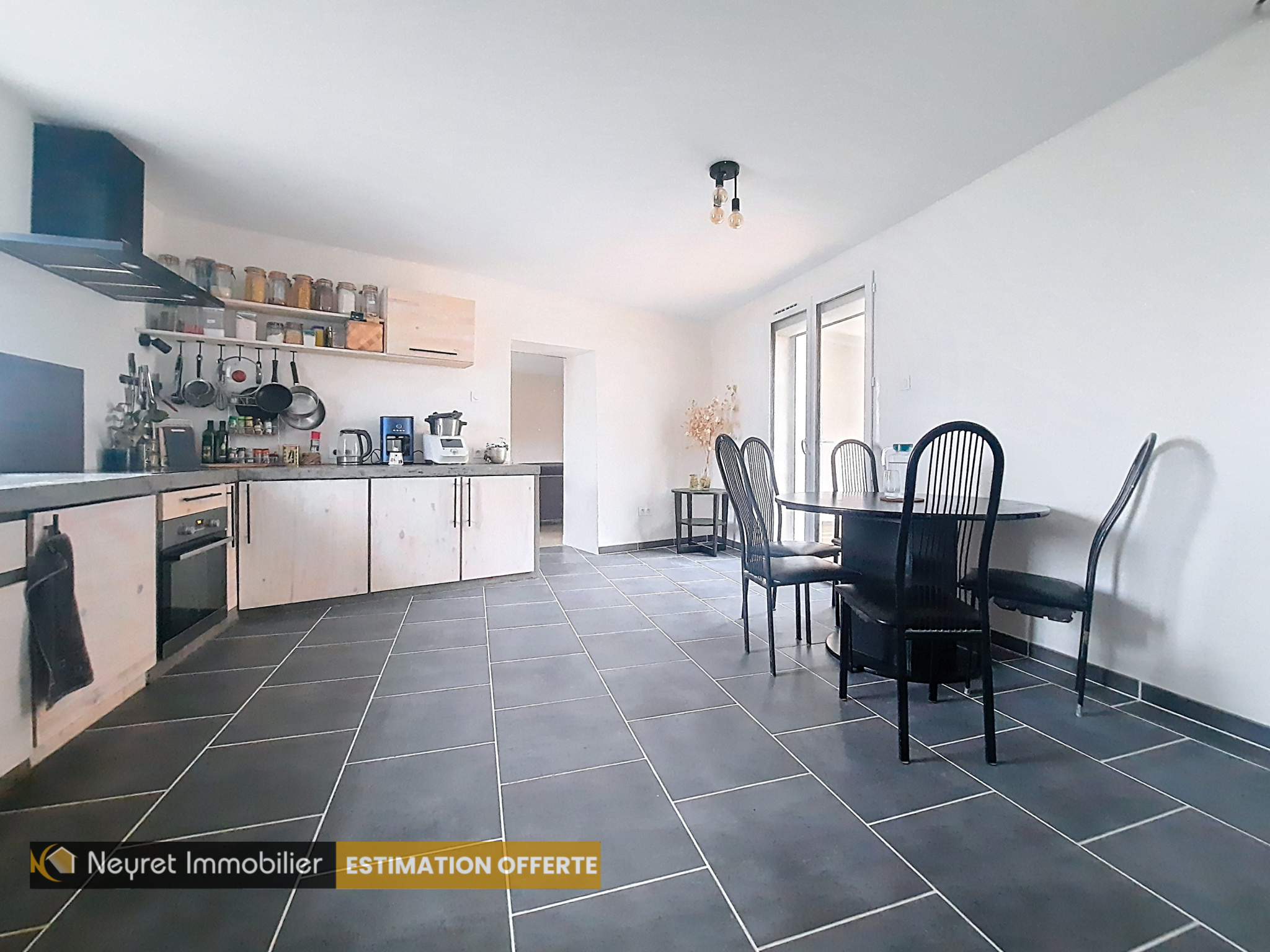 ...Au rez-de-chaussée : séjour/salon avec cuisine ouverte, donnant accès à une cour intérieure...