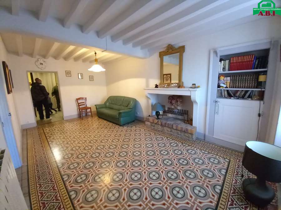 ...Une piece de vie (env 49m2) tommettes - cheminée avec four à pain - poutre - compteur électrique...