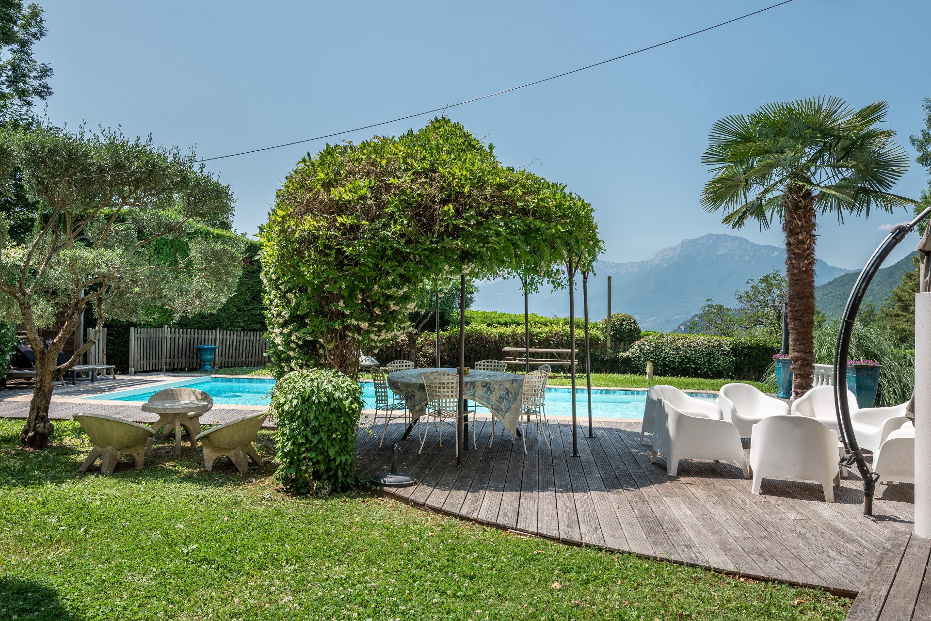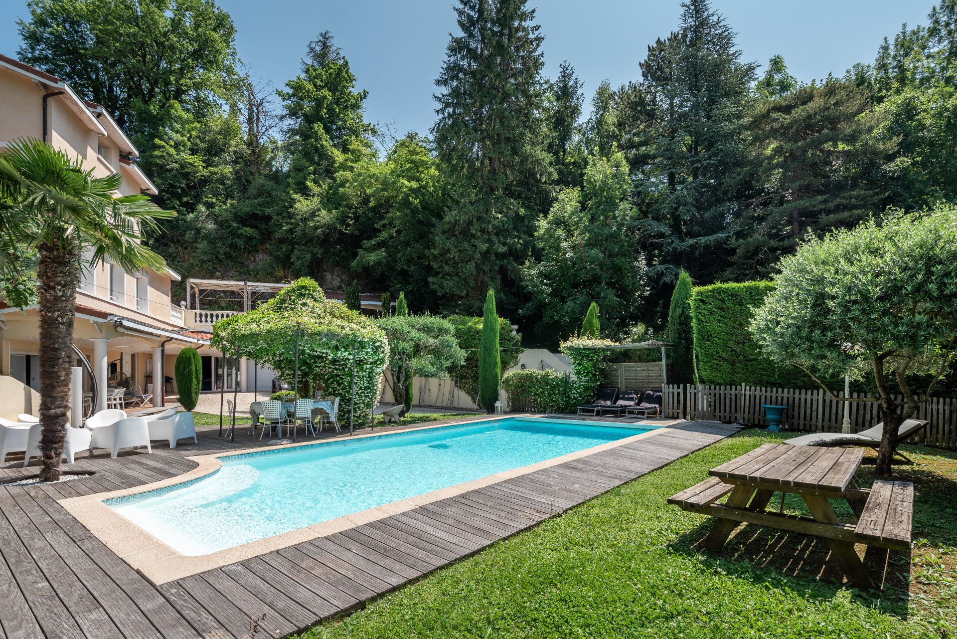 ... Édifiée sur un parc paysagé de 2 675 m2, la demeure, entièrement rénovée dans un style contemporain...