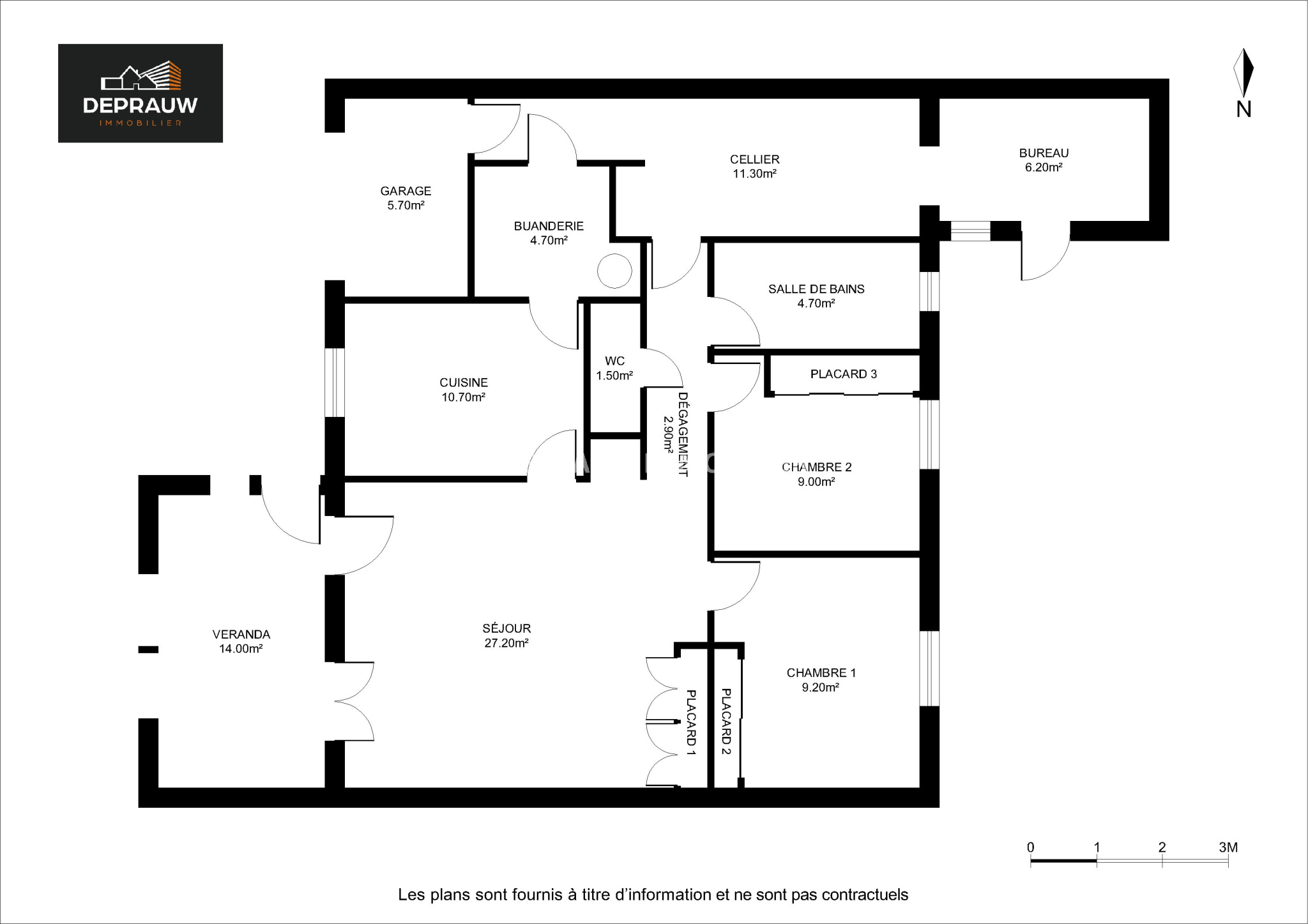 ...Elle comprend : un séjour lumineux de 47 m2 avec cuisine équipée, trois chambres avec placard,...