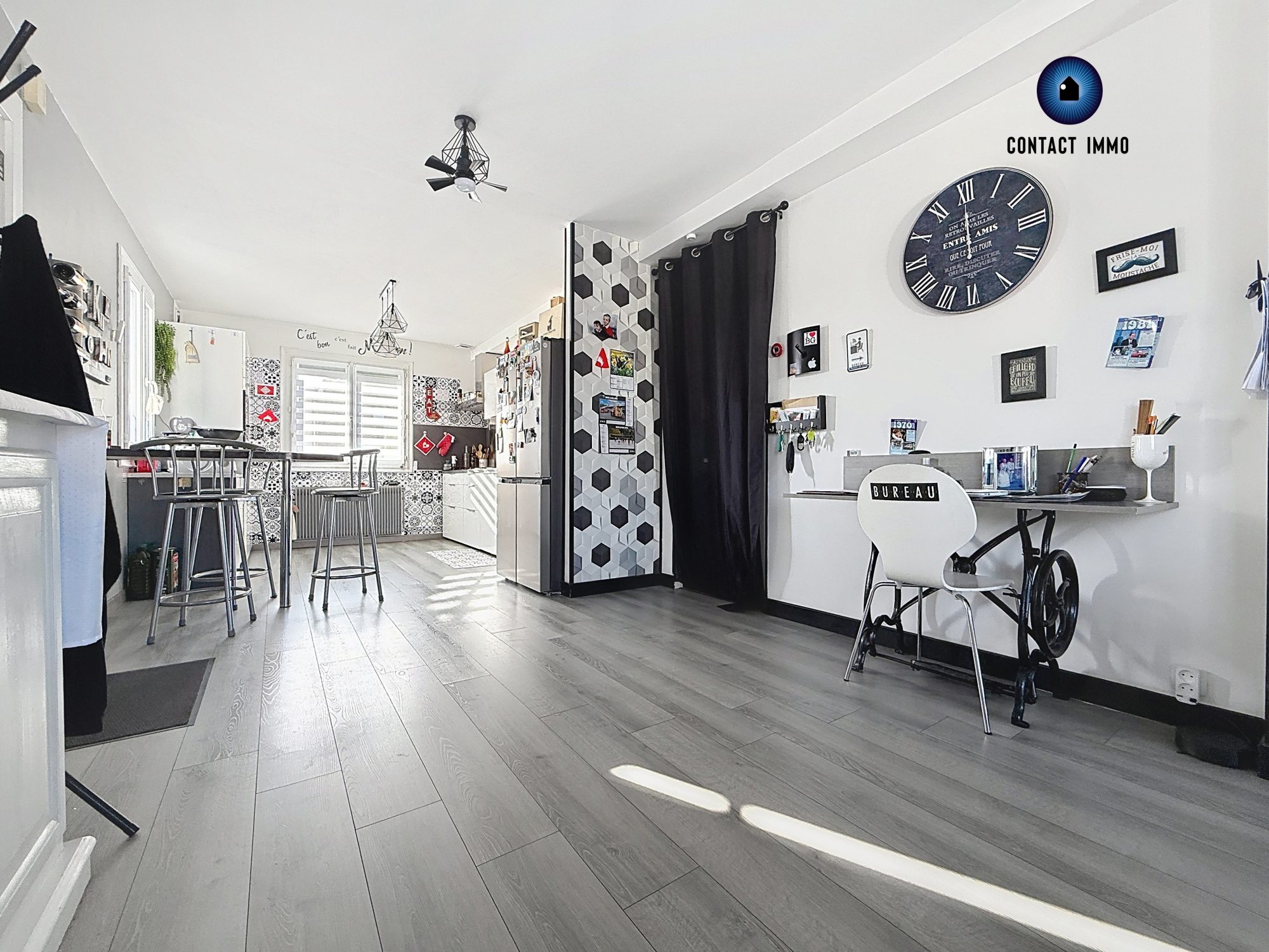 ...Dès l'entrée, vous serez séduit par sa vaste pièce de vie lumineuse, composée d'une cuisine...