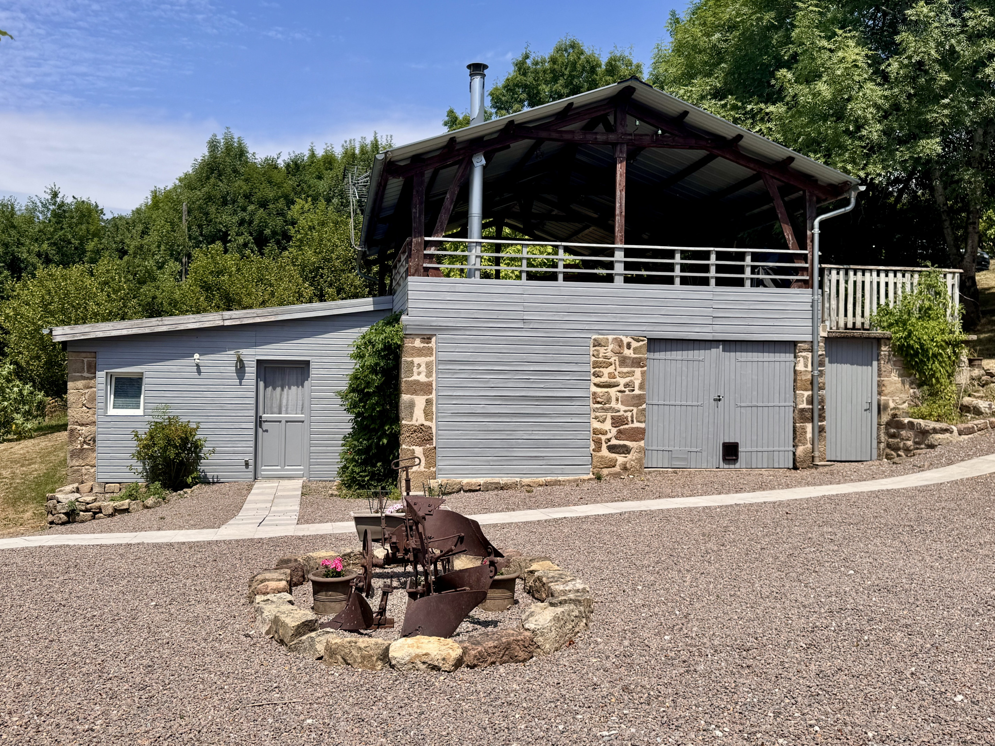 ...La pièce de vie totalement ouverte avec cuisine toute équipée avec mange debout/séjour avec poêle...