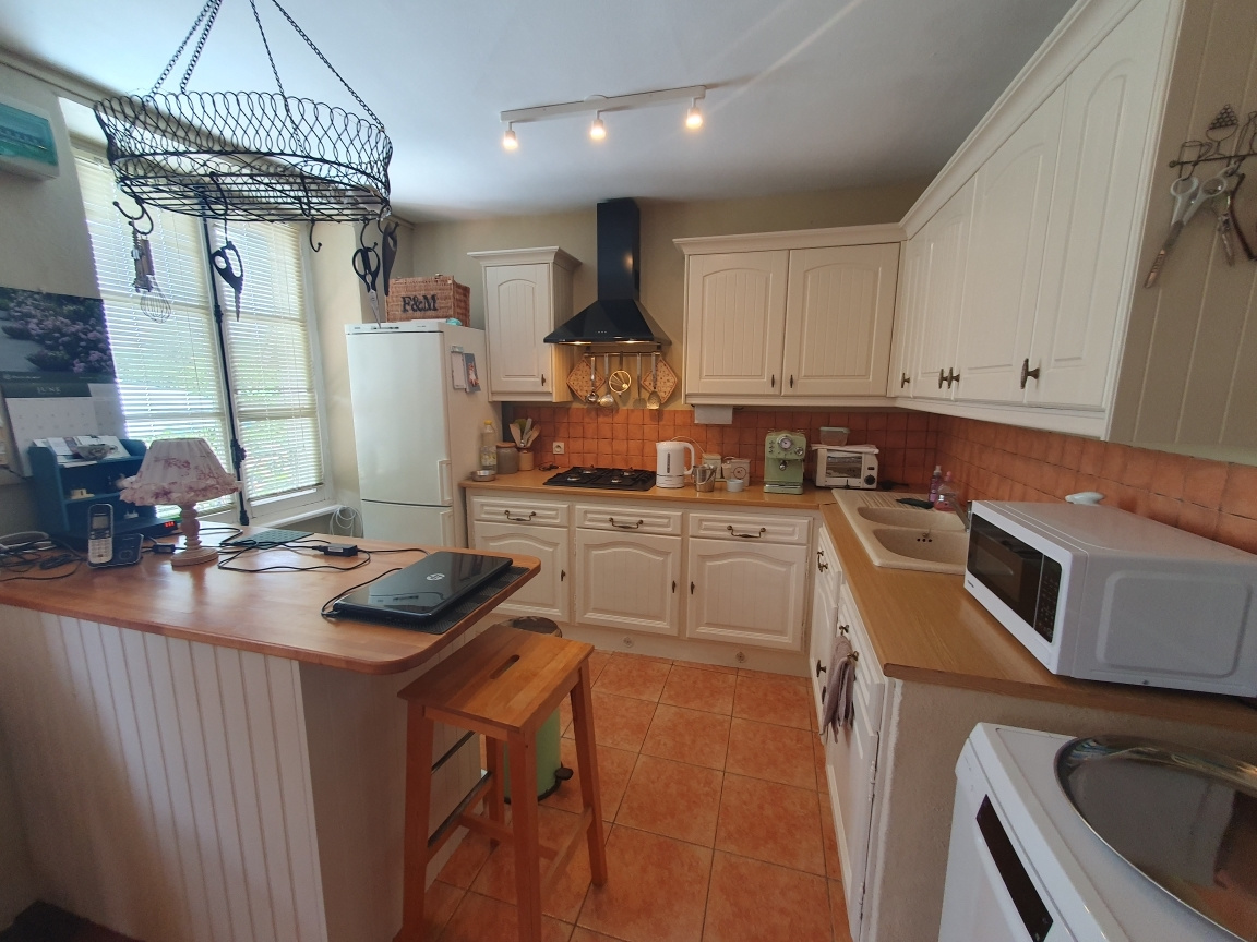 ...Elle se compose au rez-de-chaussée d'un salon et d'une cuisine équipée donnant accès à une...