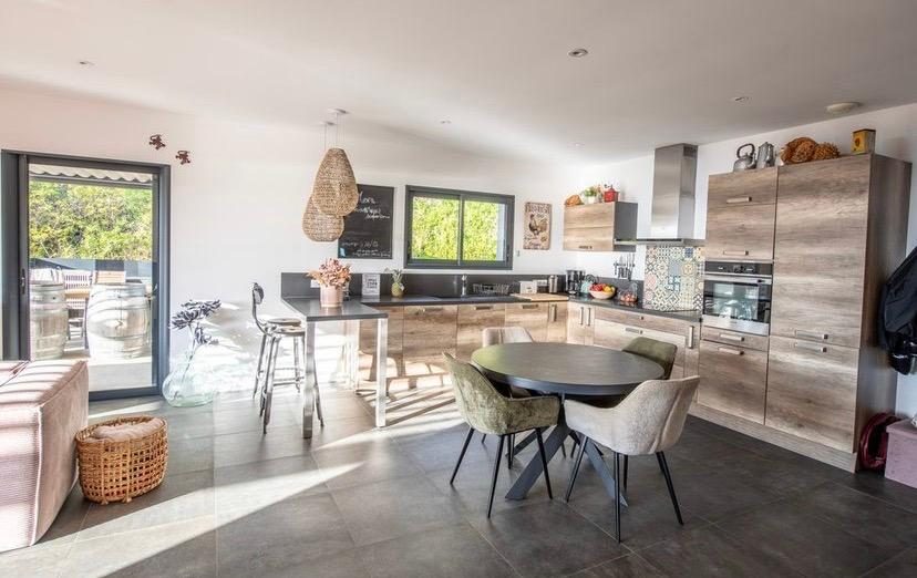 ...Sa grande pièce de vie avec une cuisine ouverte équipée est baignée de lumière grâce à de larges...