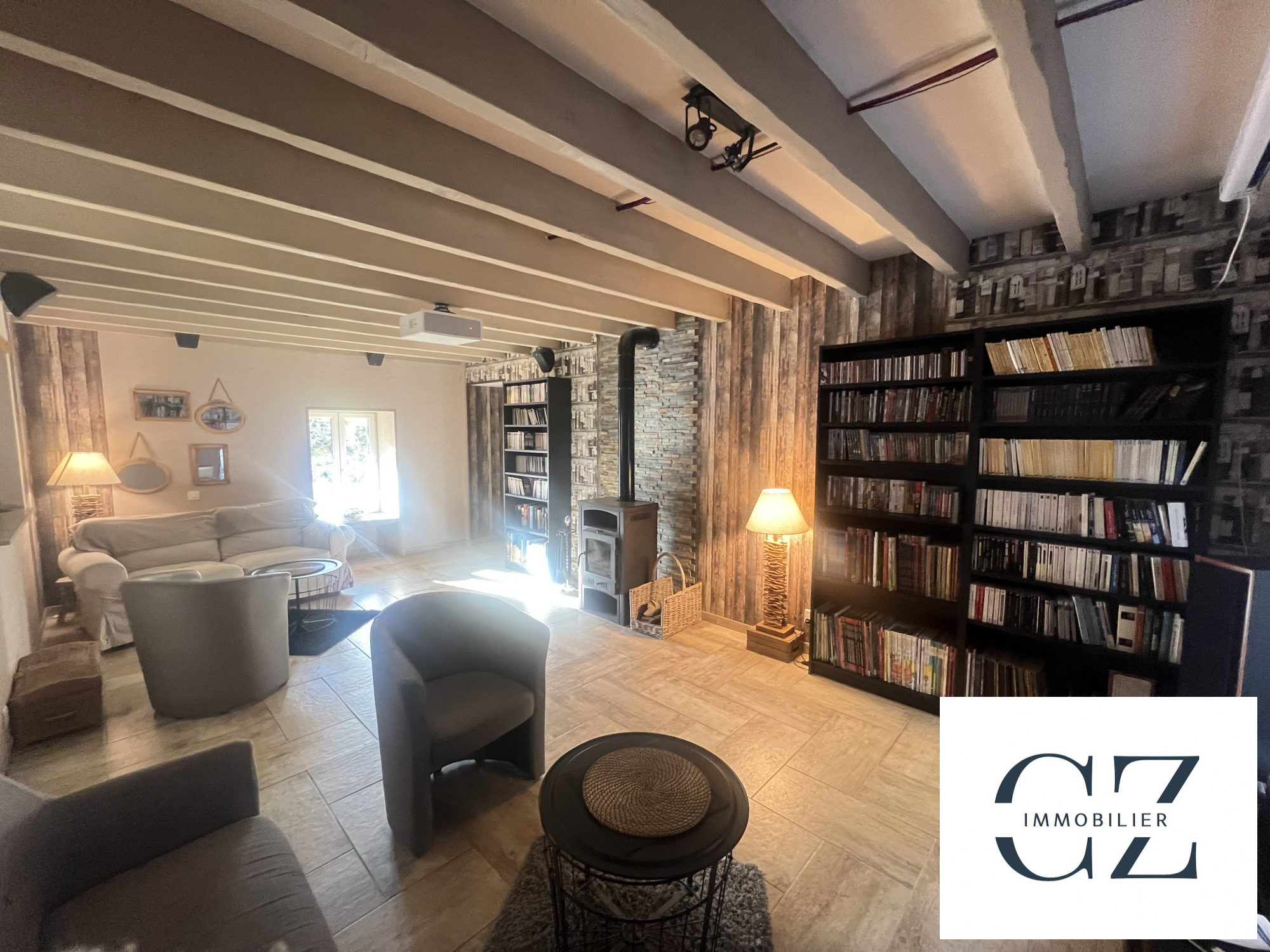...À l'étage une mezzanine dessert deux très grandes chambres et une salle de bain avec douche et WC...