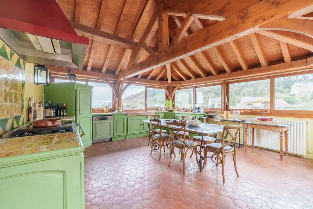 ... se prolongent naturellement. Le poêle à bois apporte une atmosphère chaleureuse et fait office de c...