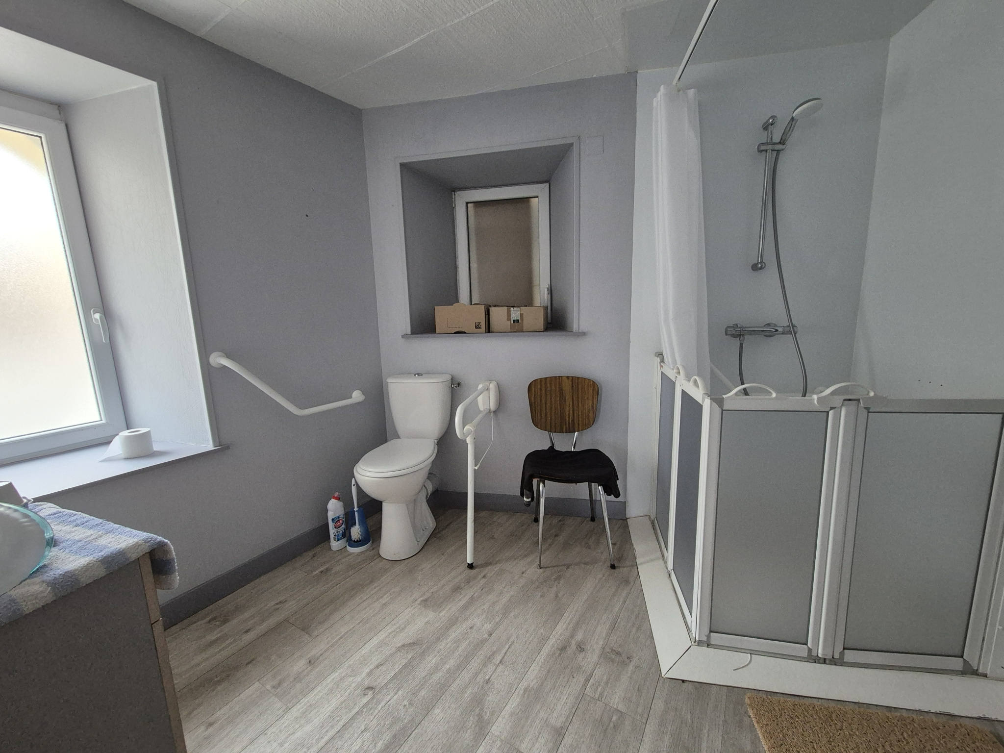 ...A l'étage, un couloir dessert 3 grandes chambres et une salle d'eau avec wc...