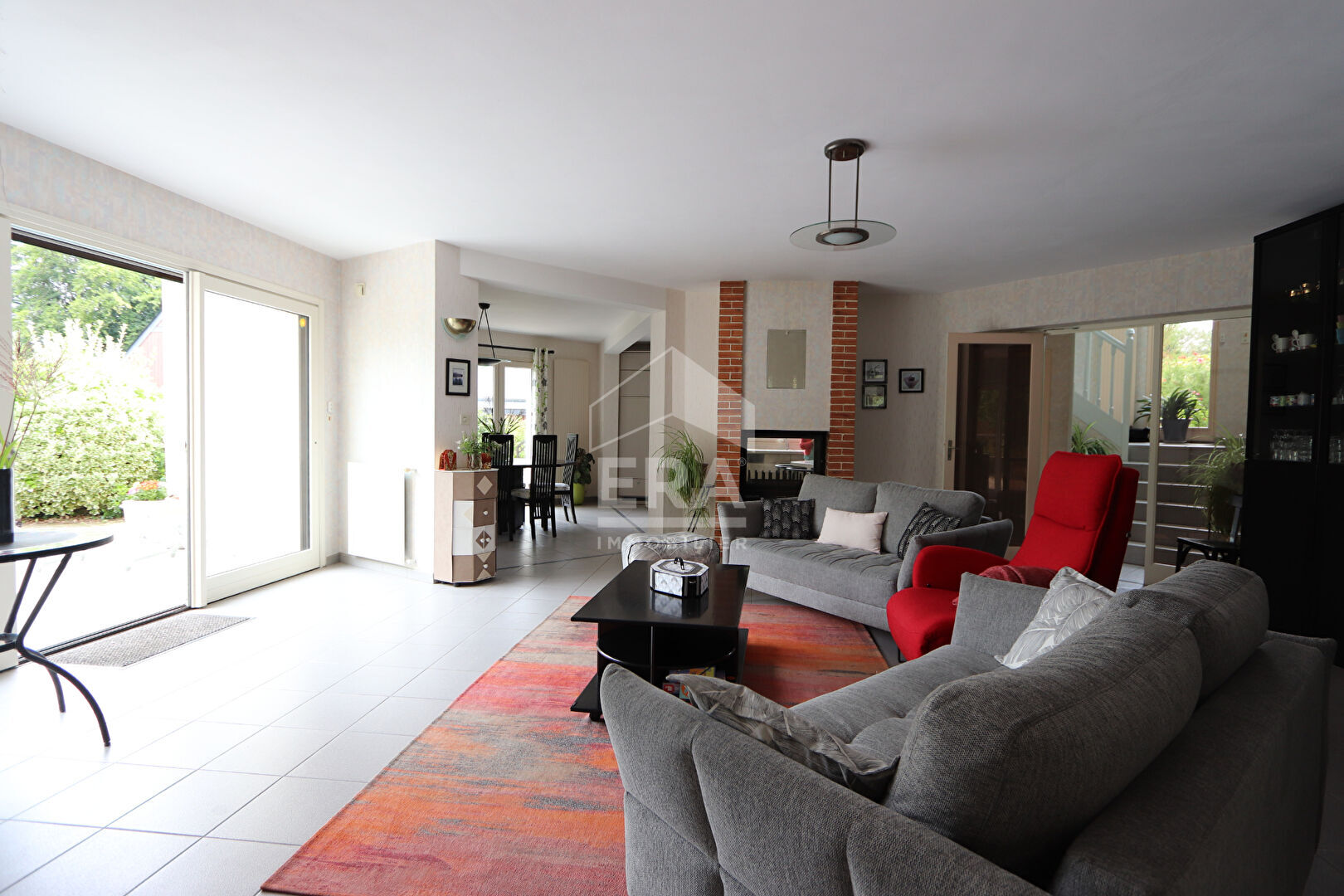 ...Au rez-de jardin vous trouverez une belle pièce de vie orientée sud de plus de 55m² avec cheminée...