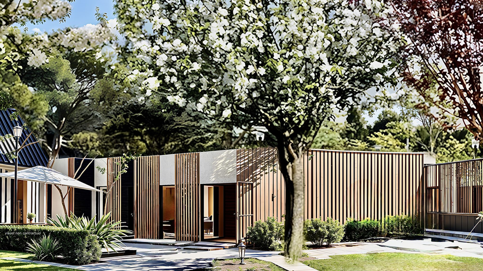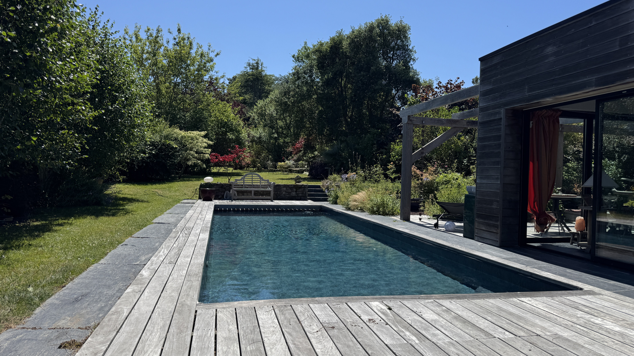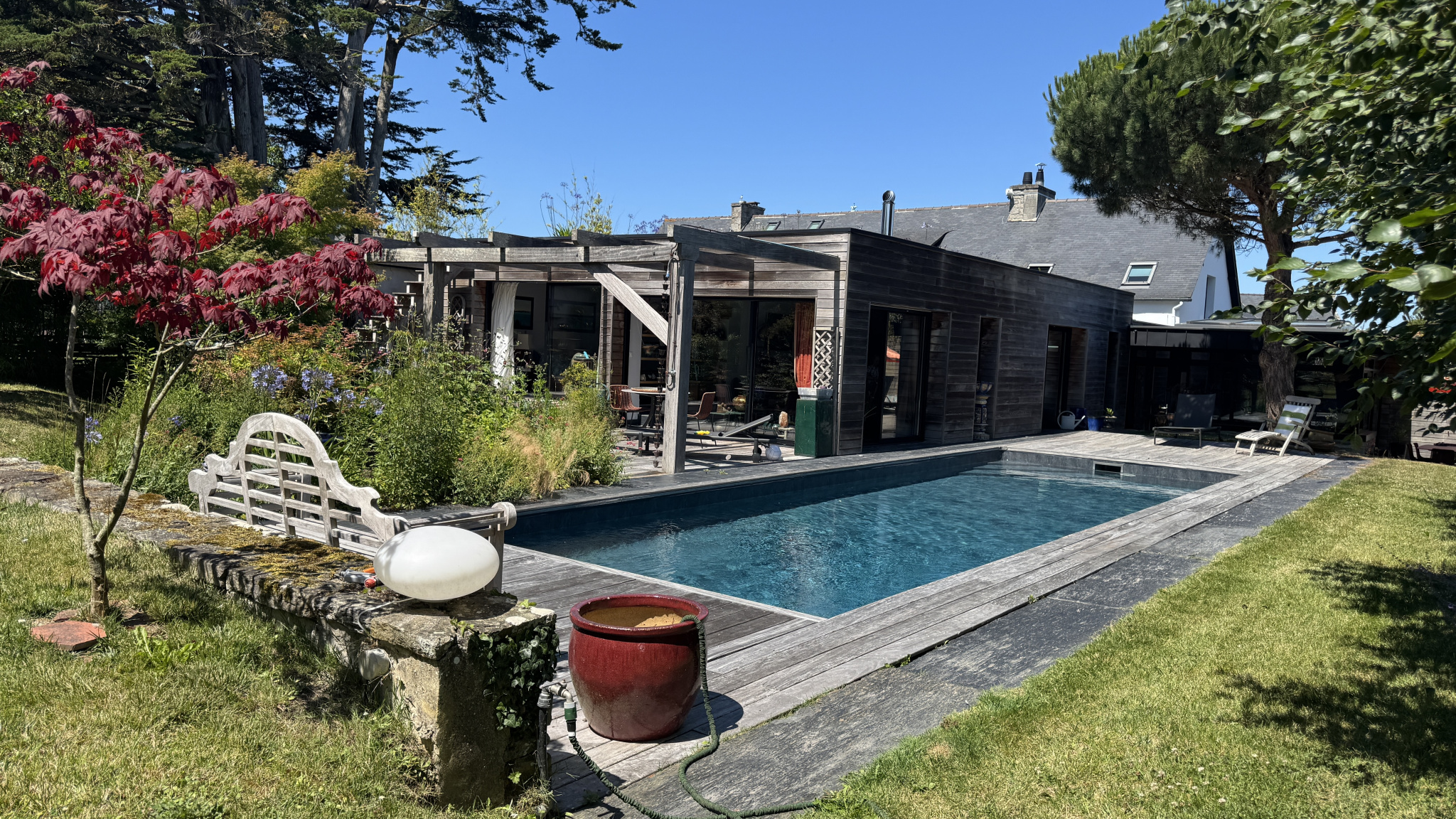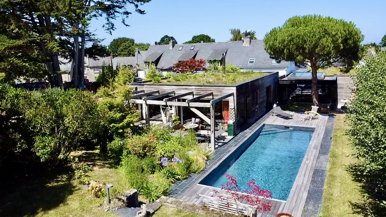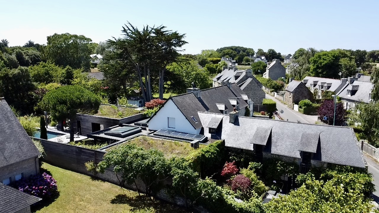 ...Belles prestations, maison atypique avec toit végètal sur la partie moderne...