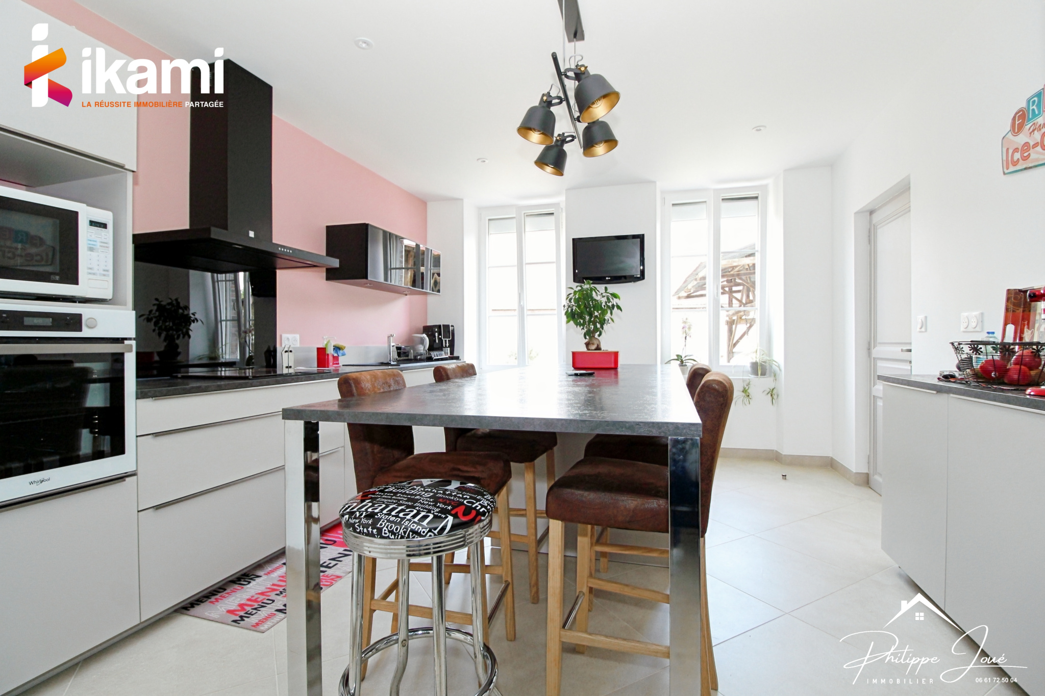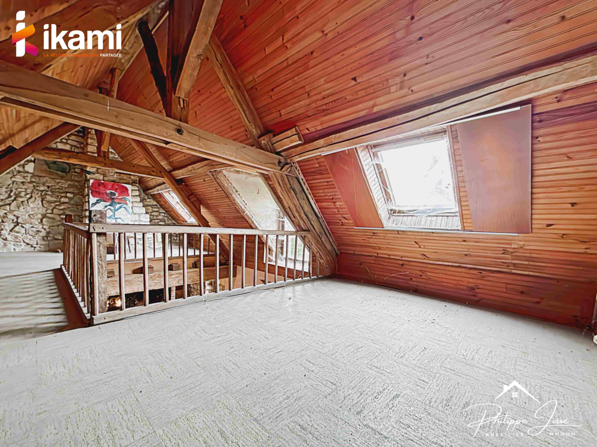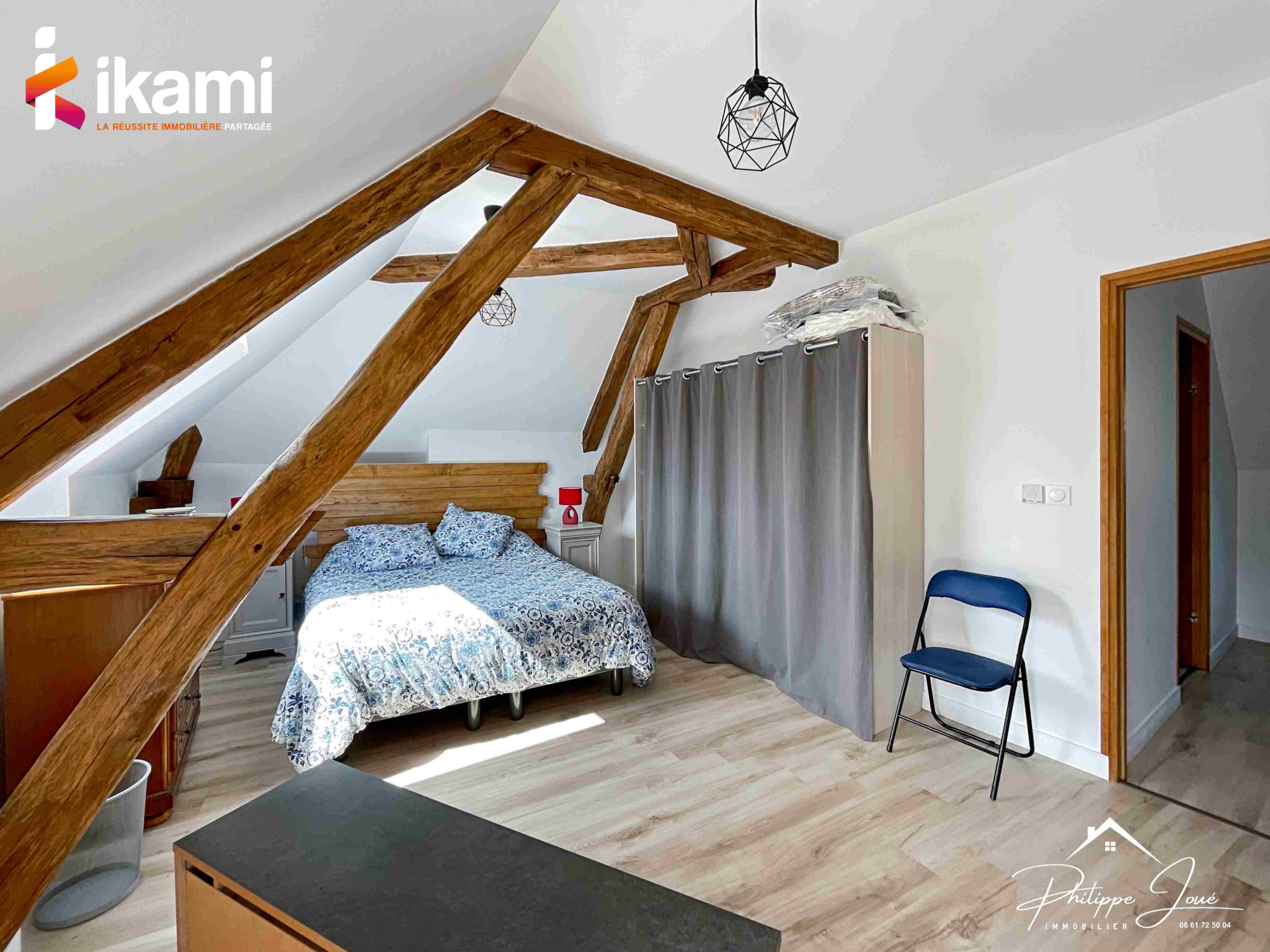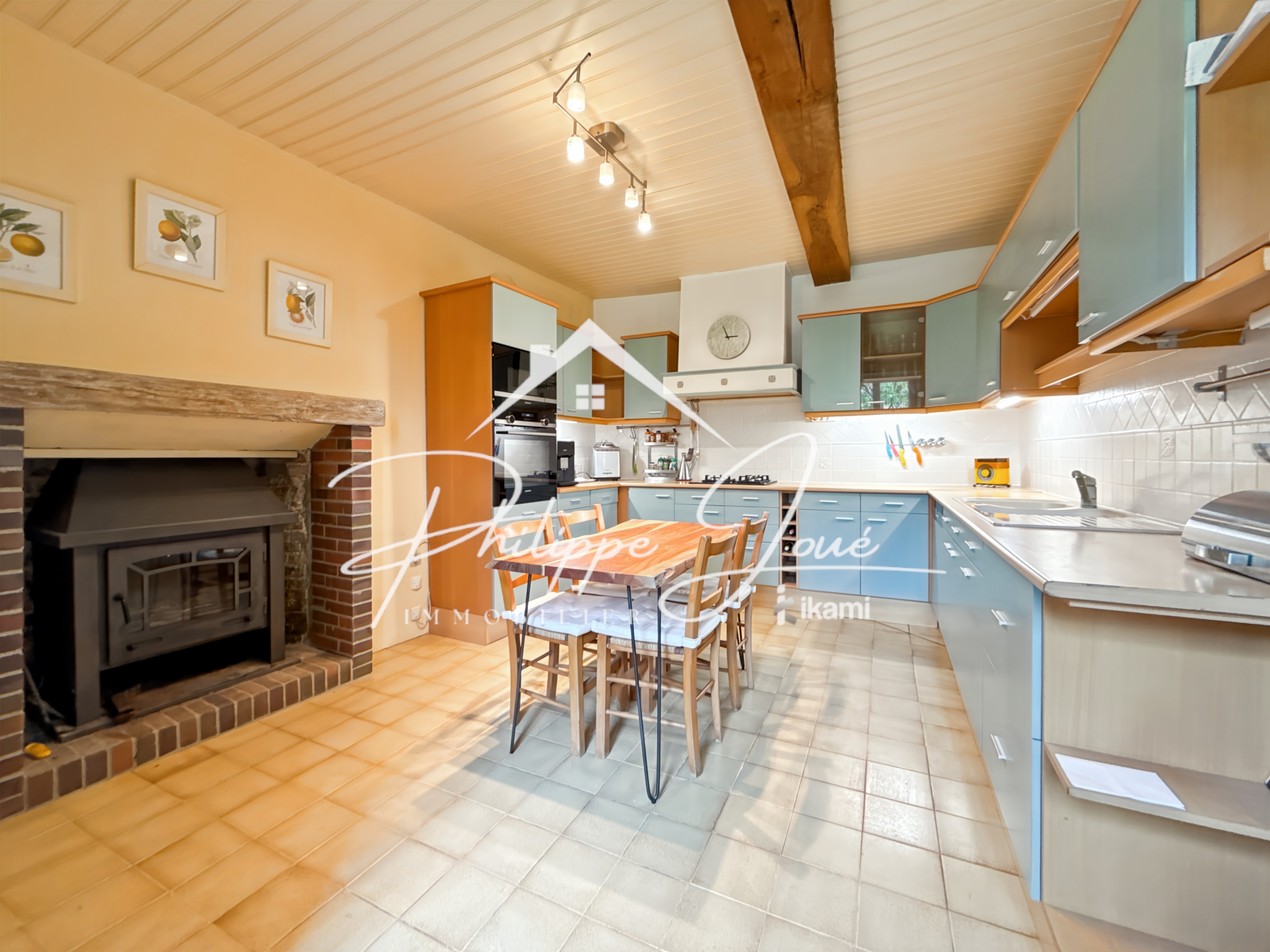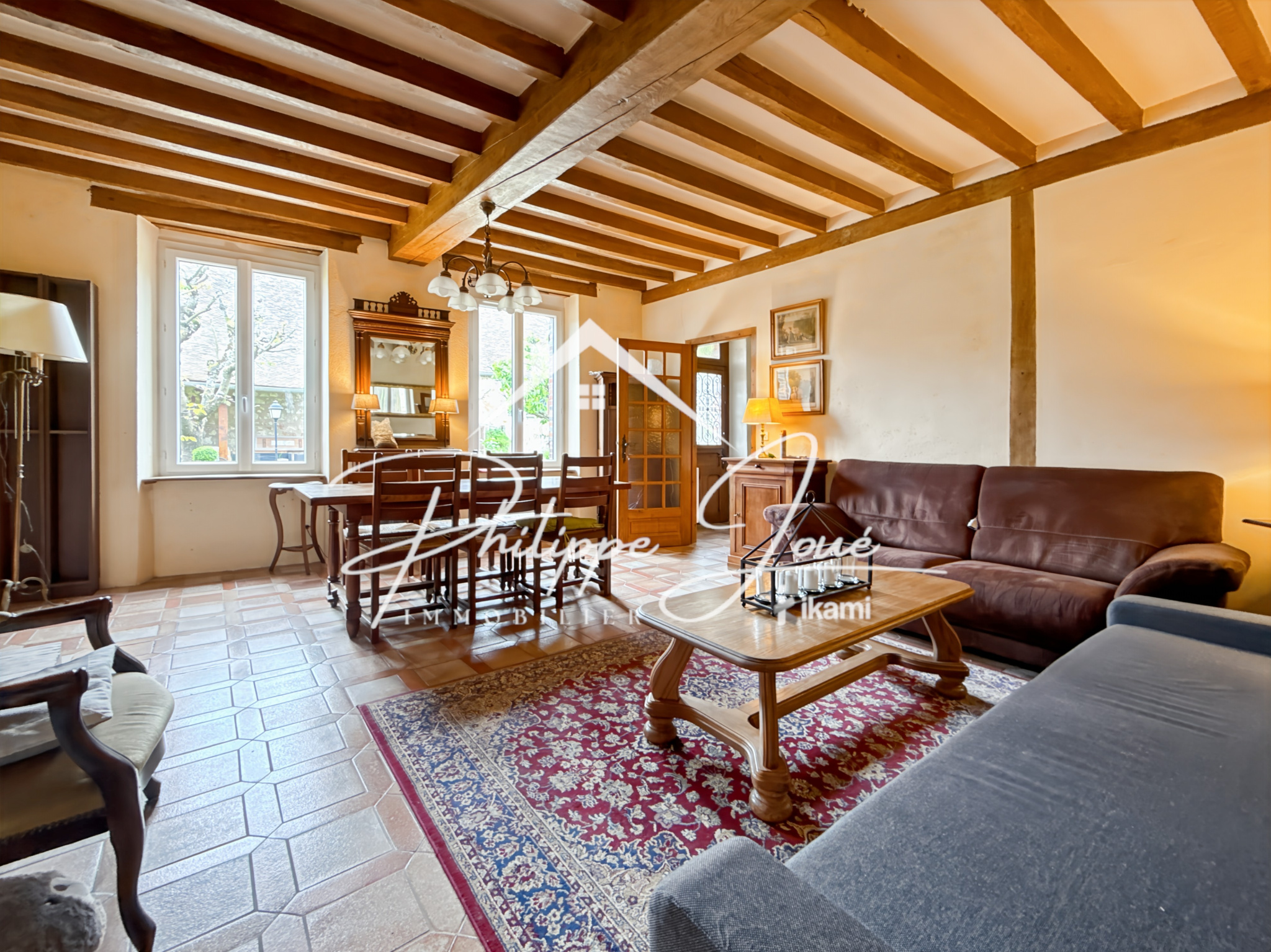 ...Dès l'entrée, vous serez accueillis par une grande pièce de vie agrémentée de poutres apparentes...