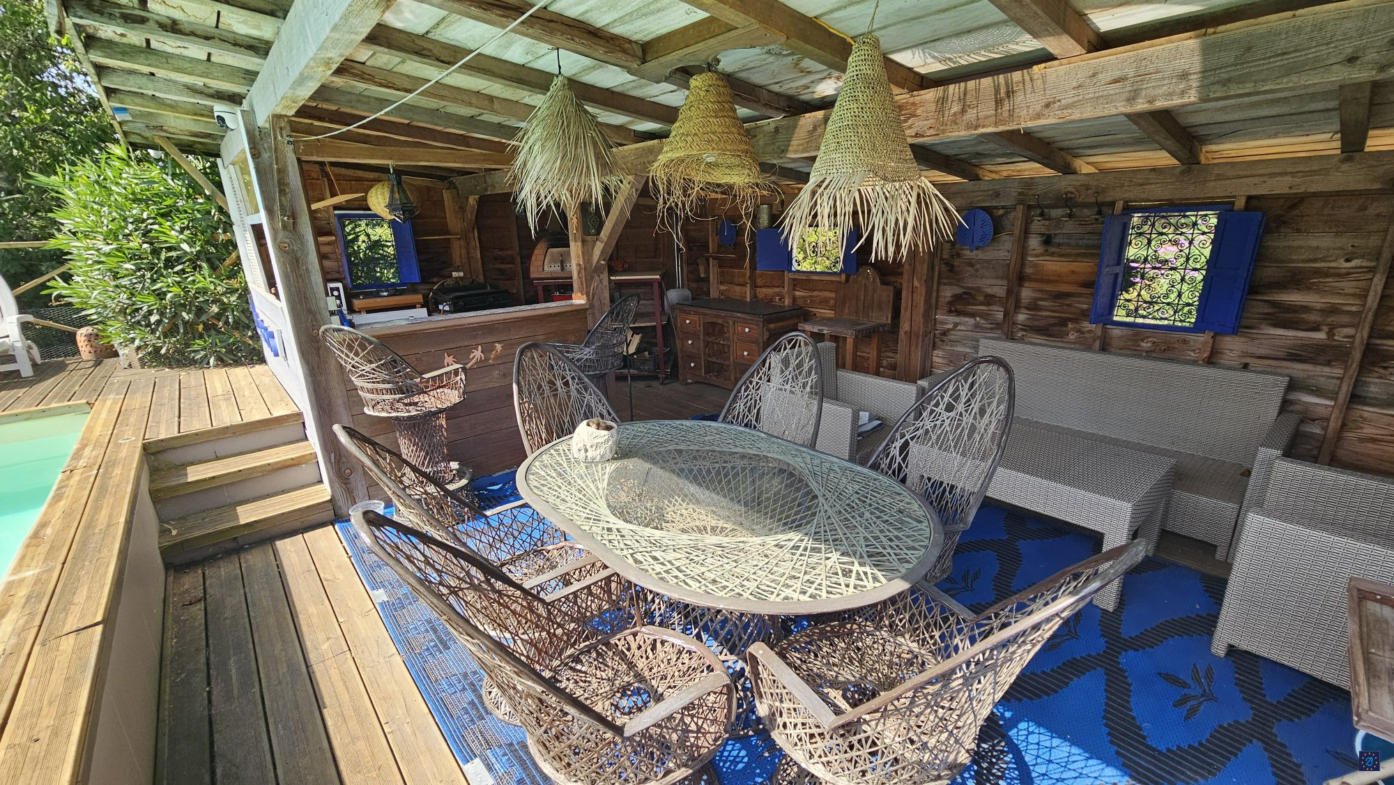...Reliée par une véranda, une seconde maison ancienne, rénovée, de plain-pied, de 70m² comprenant...