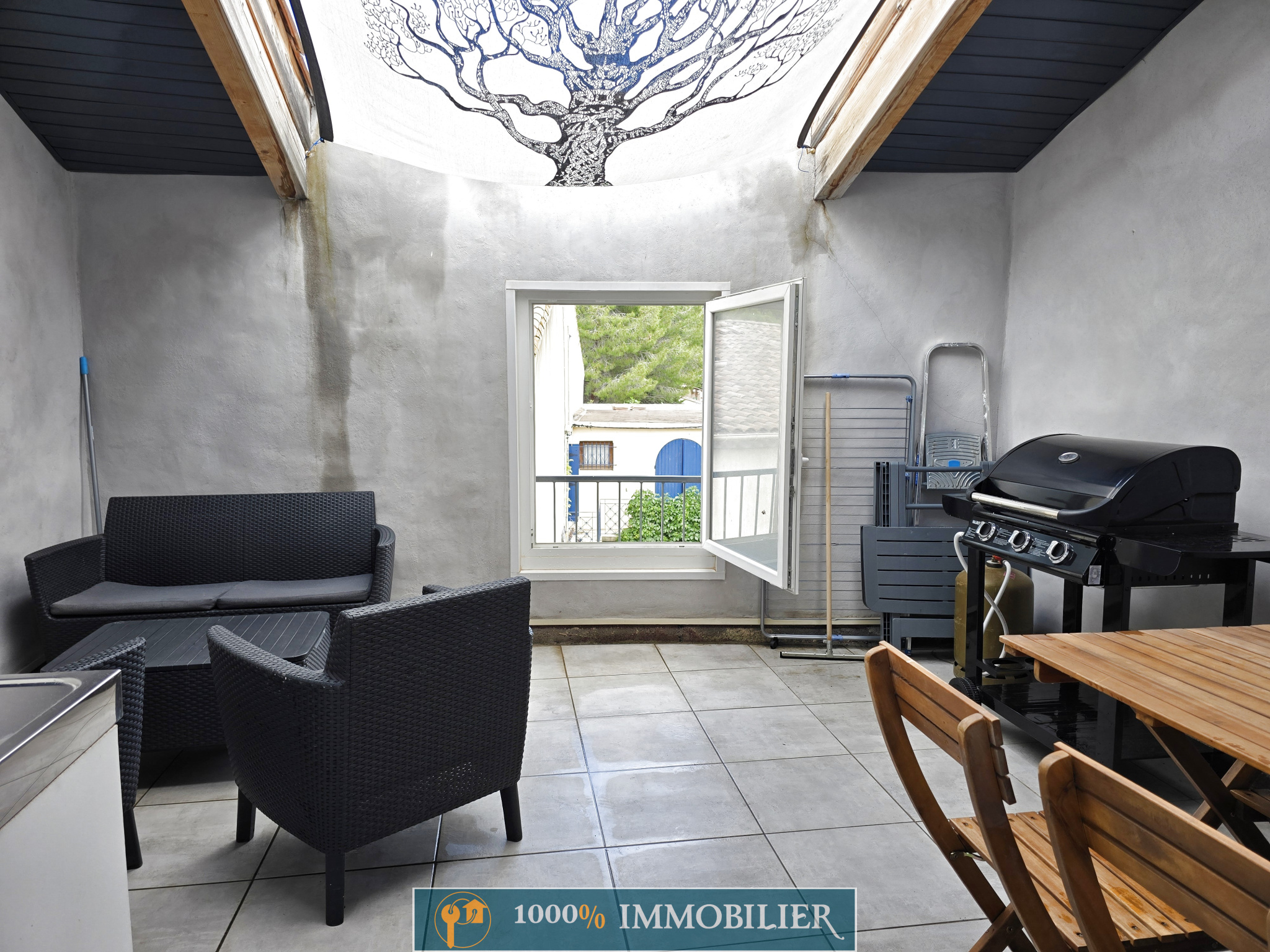 ...Séjour, cuisine, placard, au-dessus : un palier, une grande chambre climatisée de 16m2, salle...