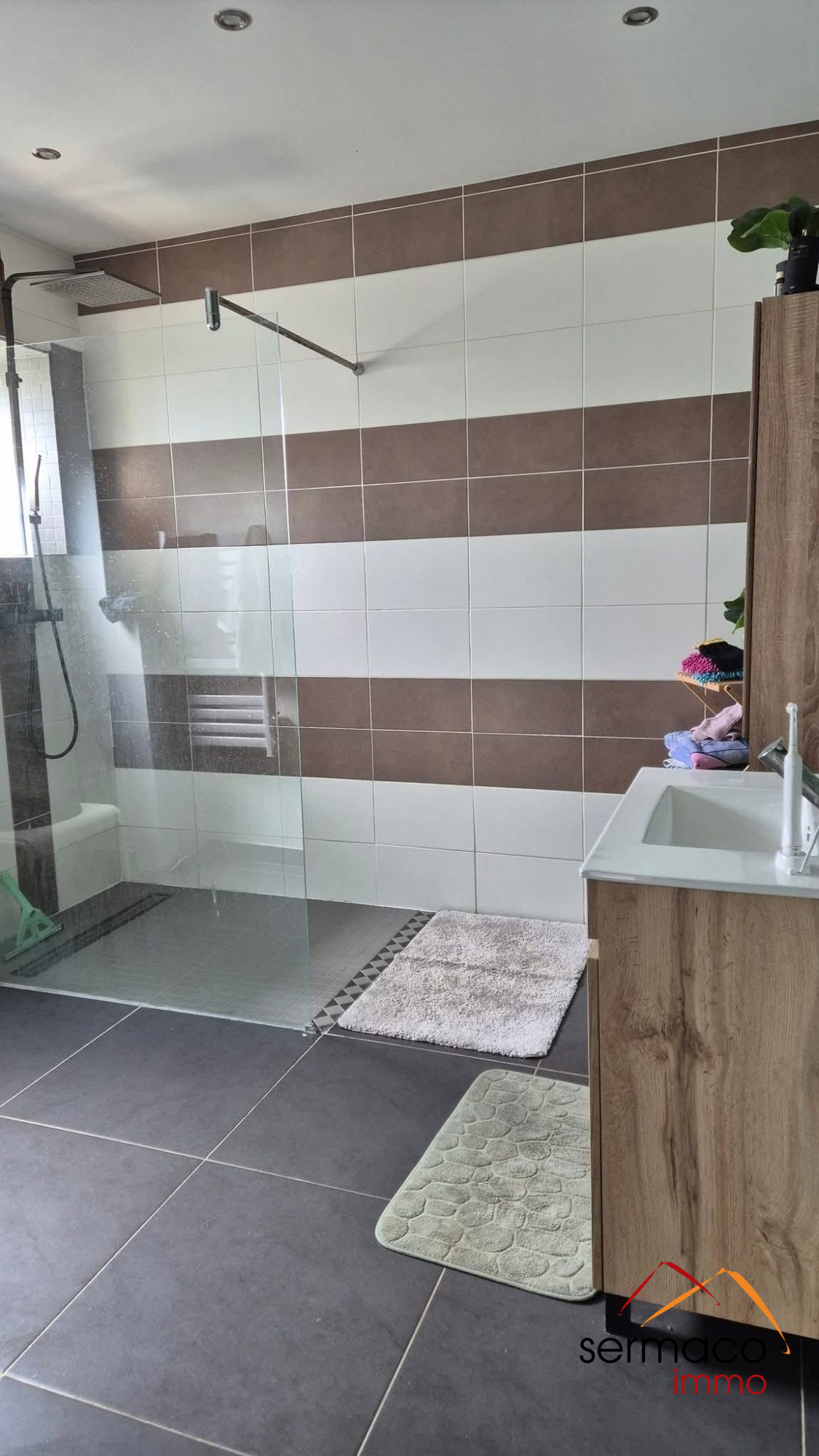 ...64m2 habitables sur un terrain de 340m2 comprenant : - Au RDC : une entrée, une cuisine équipée...