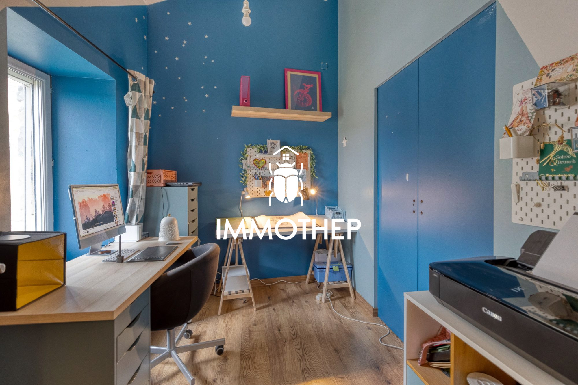 ...Elle se compose d'une cuisine aménagée, d'un séjour, de 3 chambres + 1 bureau, et d'une salle...