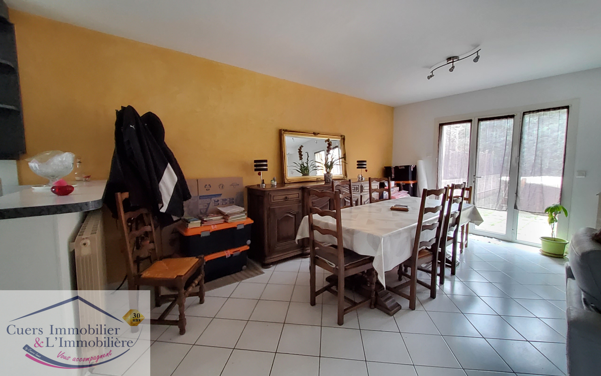 ...Le rez-de-chaussée se compose d'une entrée, d'une cuisine aménagée ouverte sur un salon/salle à...