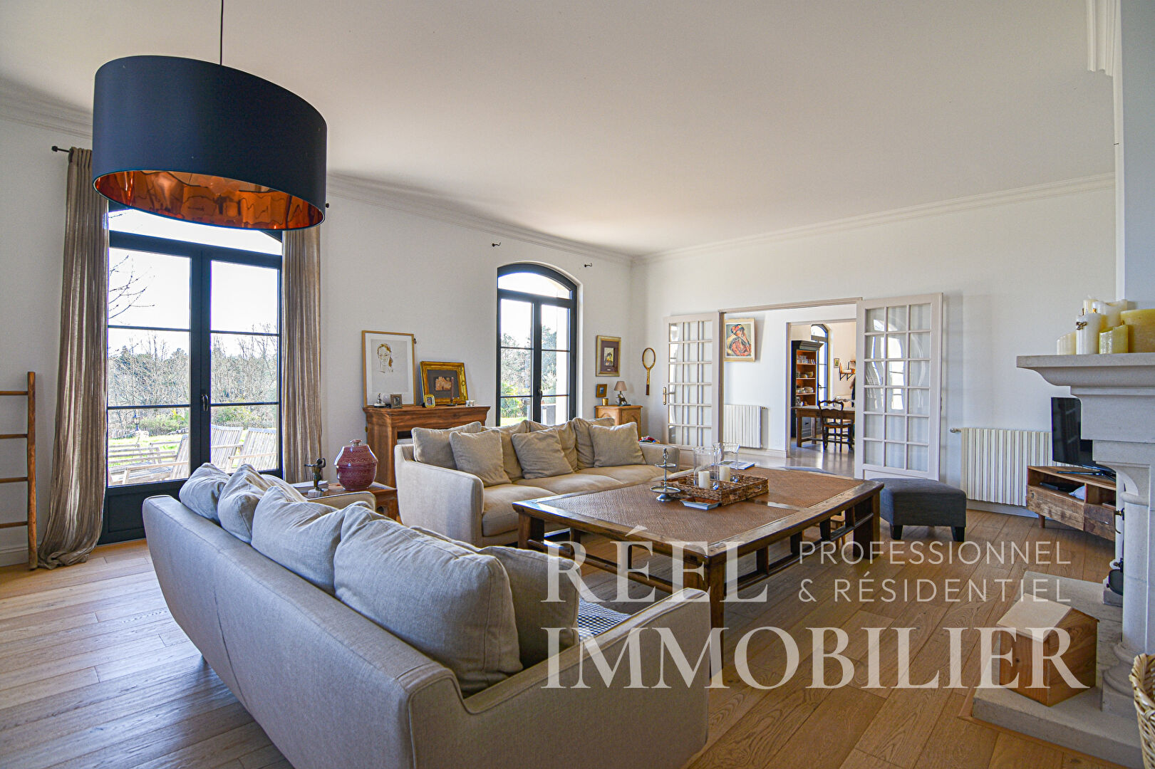 ...L'espace de vie principal séduit par ses volumes généreux et sa cheminée, créant ainsi une...