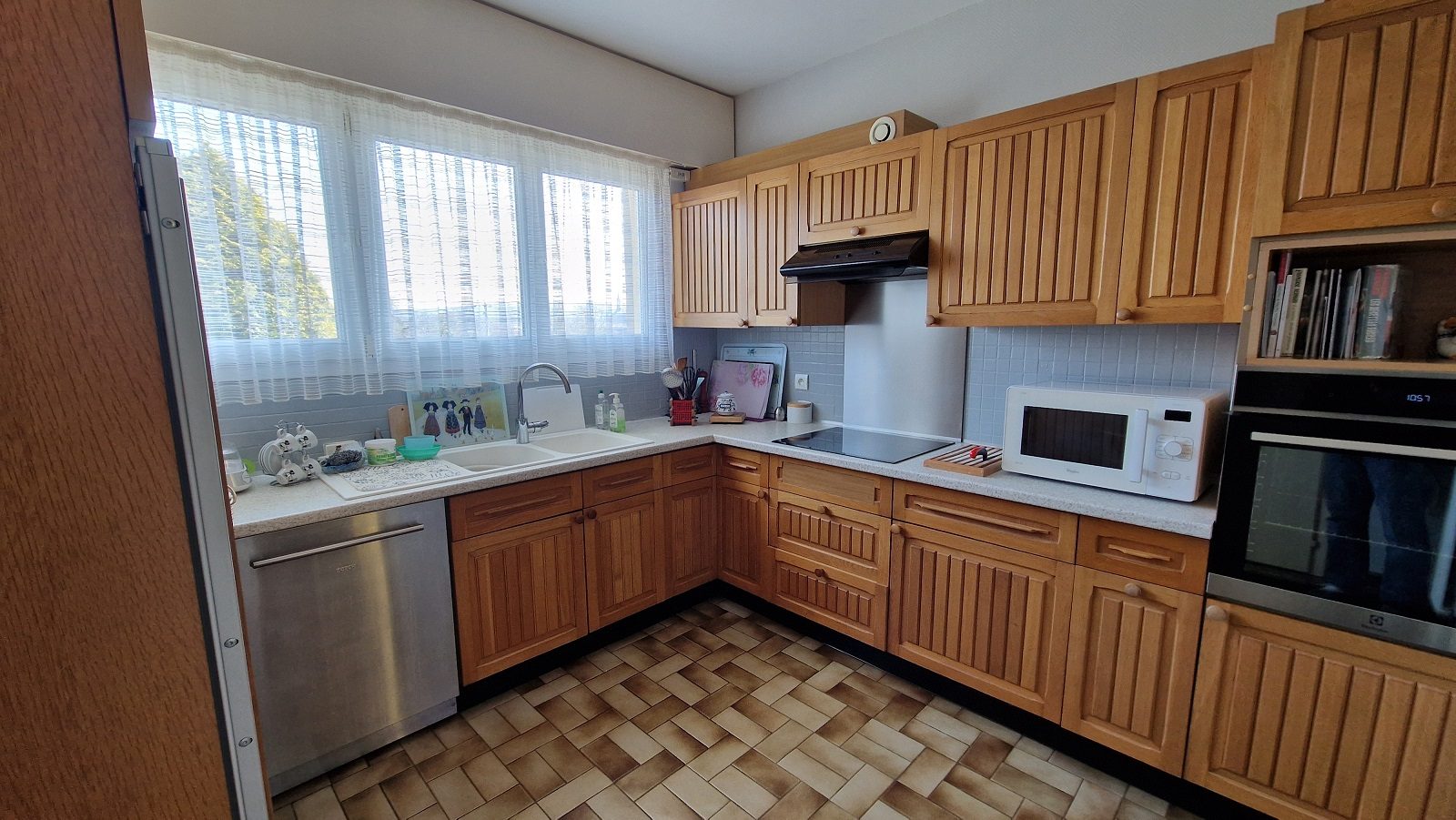 ...Au RC , cuisine ouverte sur salle à manger , WC, et bureau...
