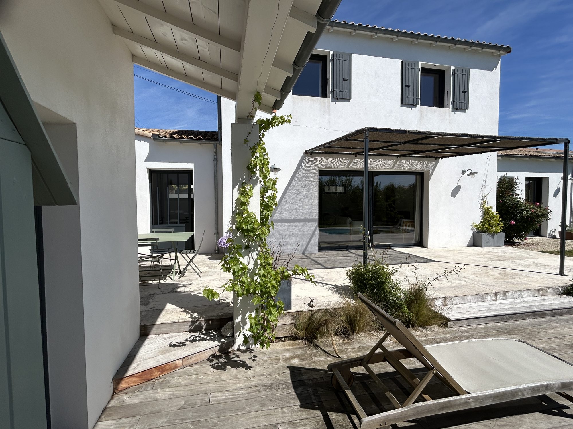 ... à la sèvres et arboré,Terrasse, véranda préau et garage buanderie.