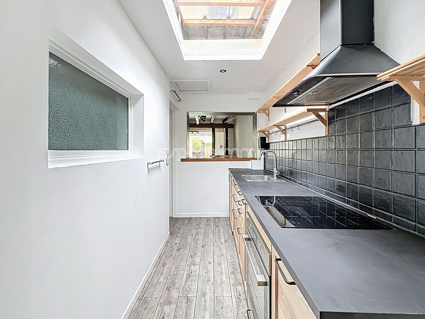 ...Vous trouverez au rez-de-chaussée : un couloir d'entrée desservant le séjour, la cuisine aménagée...