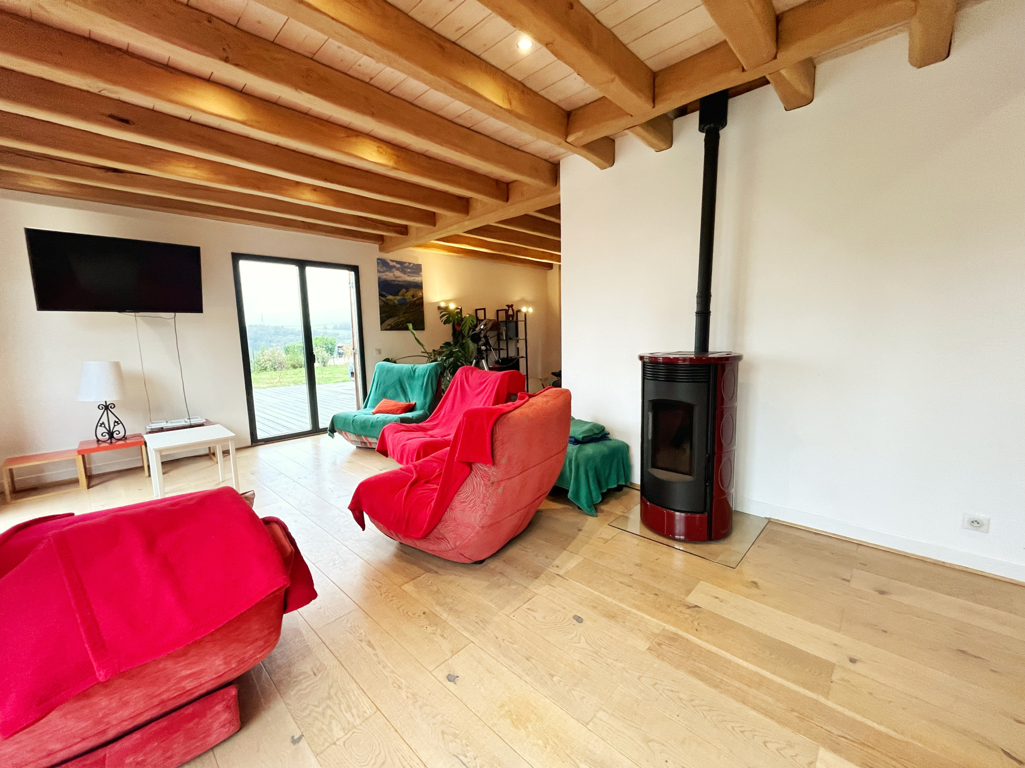 ...Vous entrez dans une pièce de vie de 75 m2 baignée de lumiere avec cuisine ouverte toute équipée...